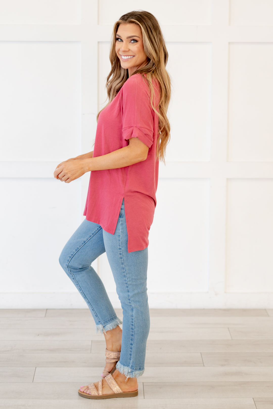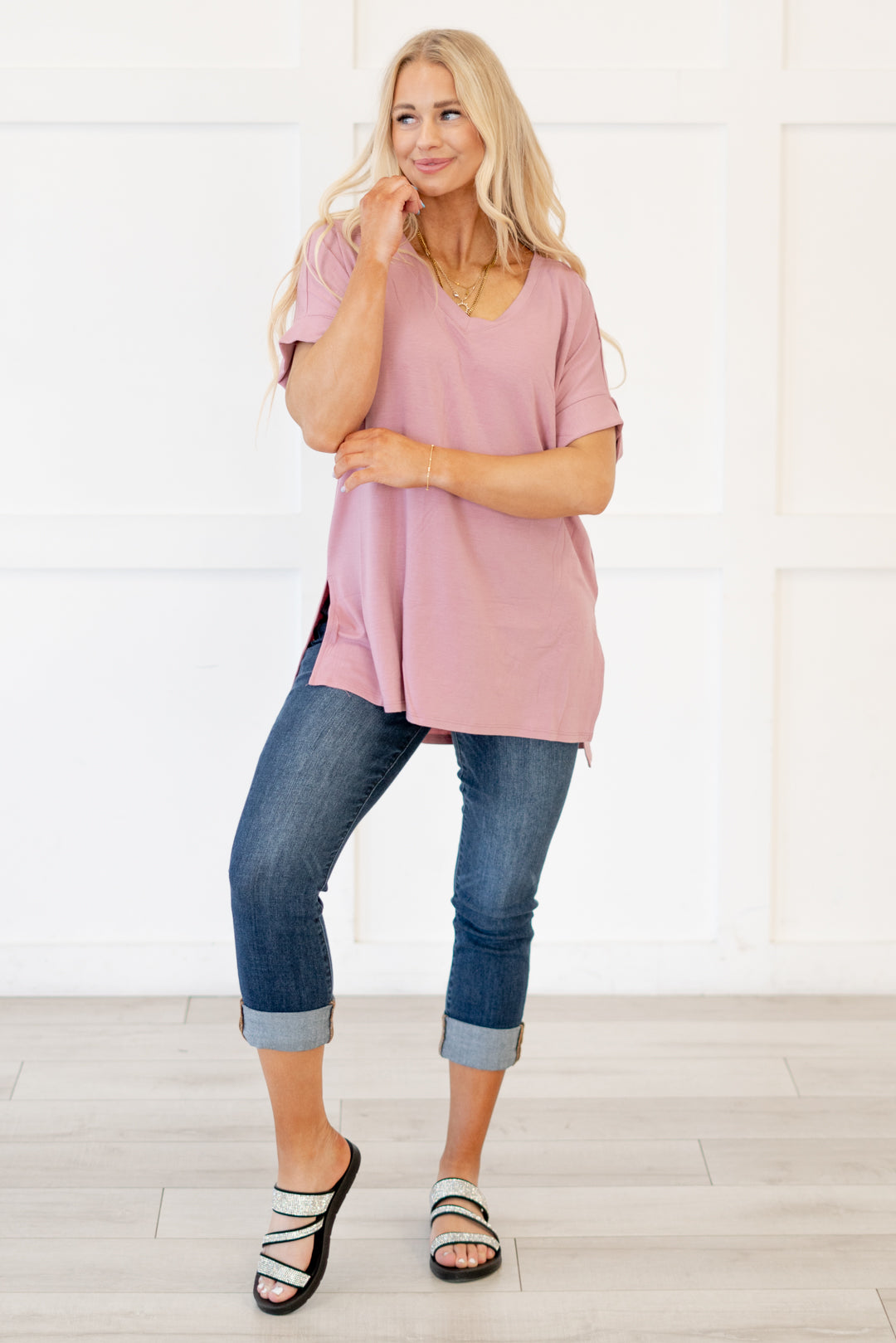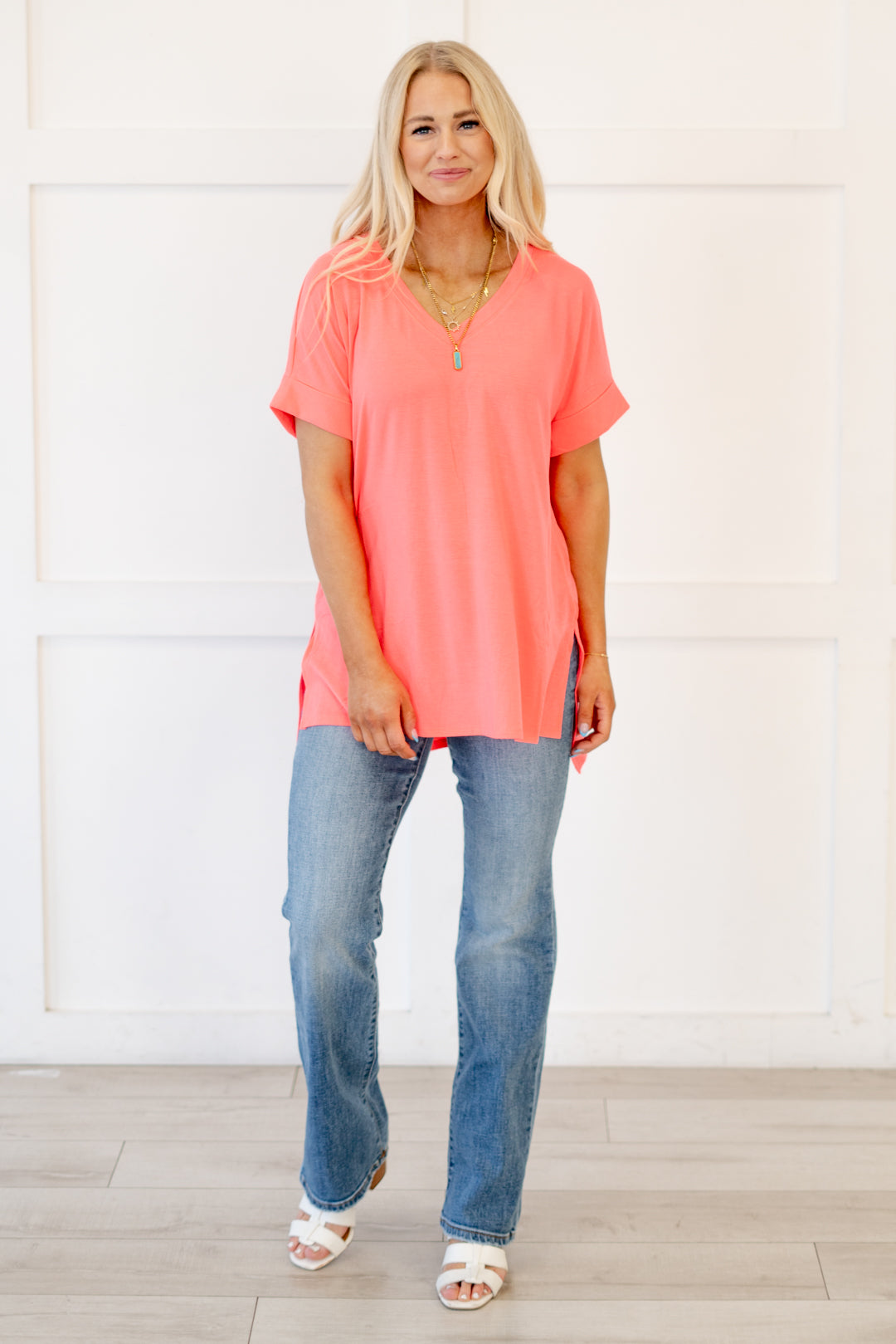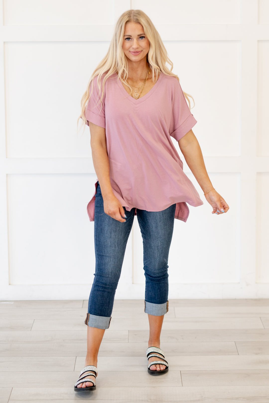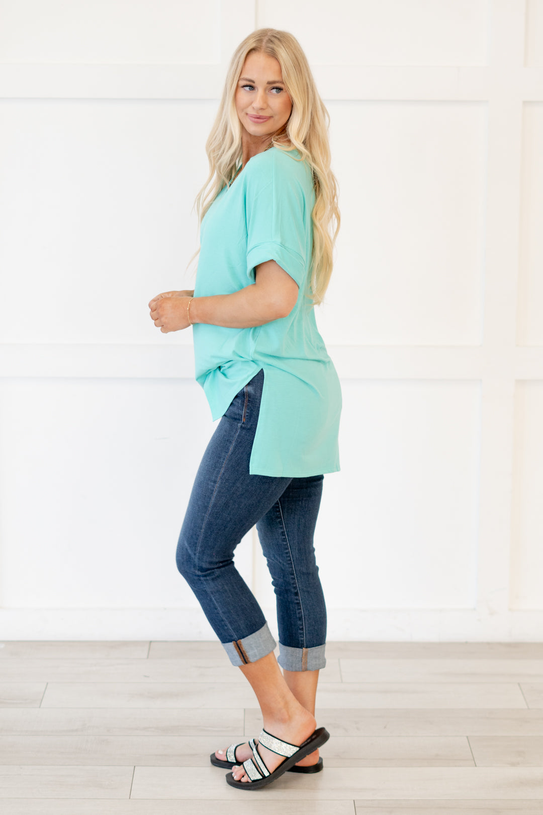 The absolutely perfect v neck tee with oversized folded sleeves.