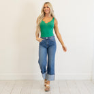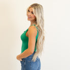 Brushed Dry Microfiber Split Neck Bodysuit Kelly Green