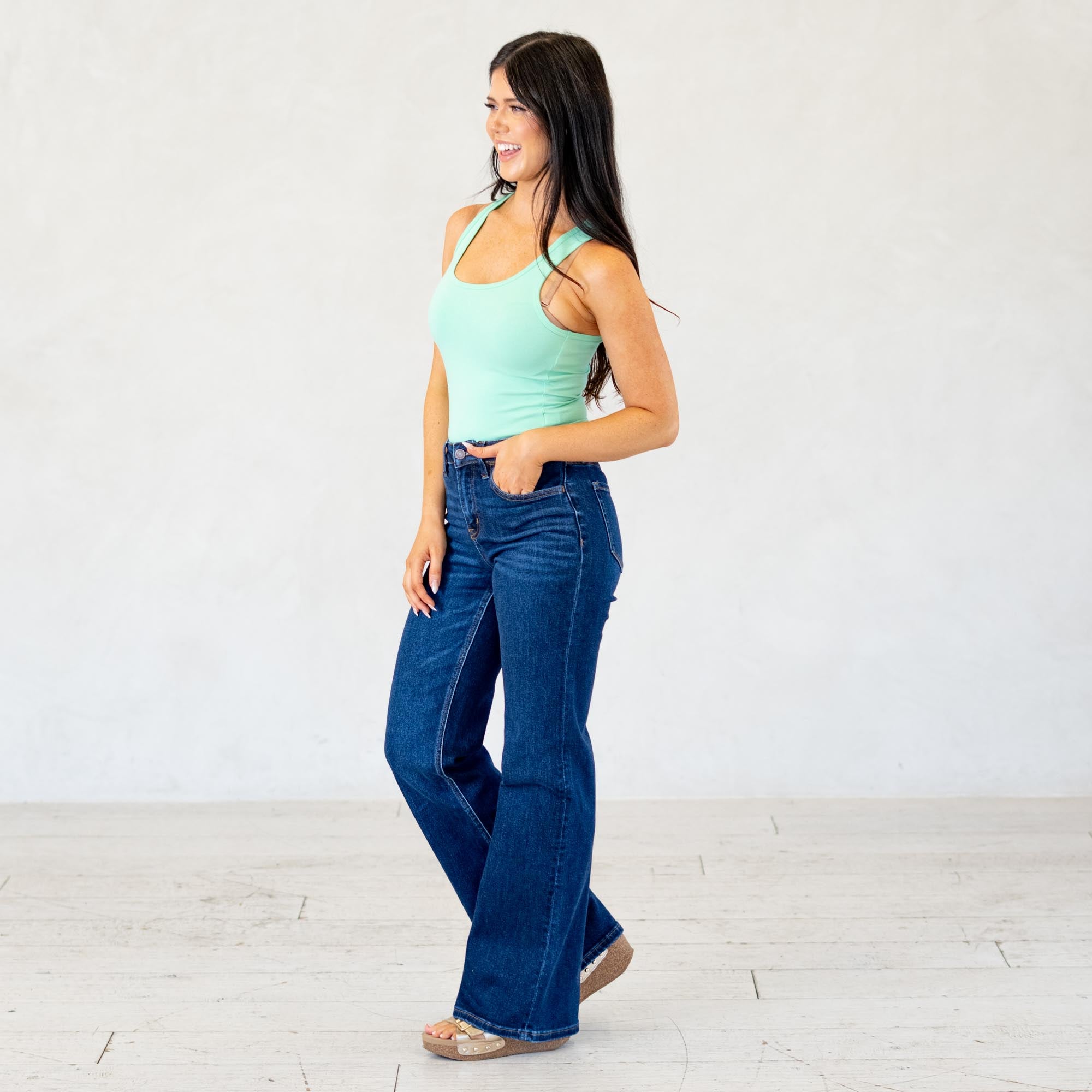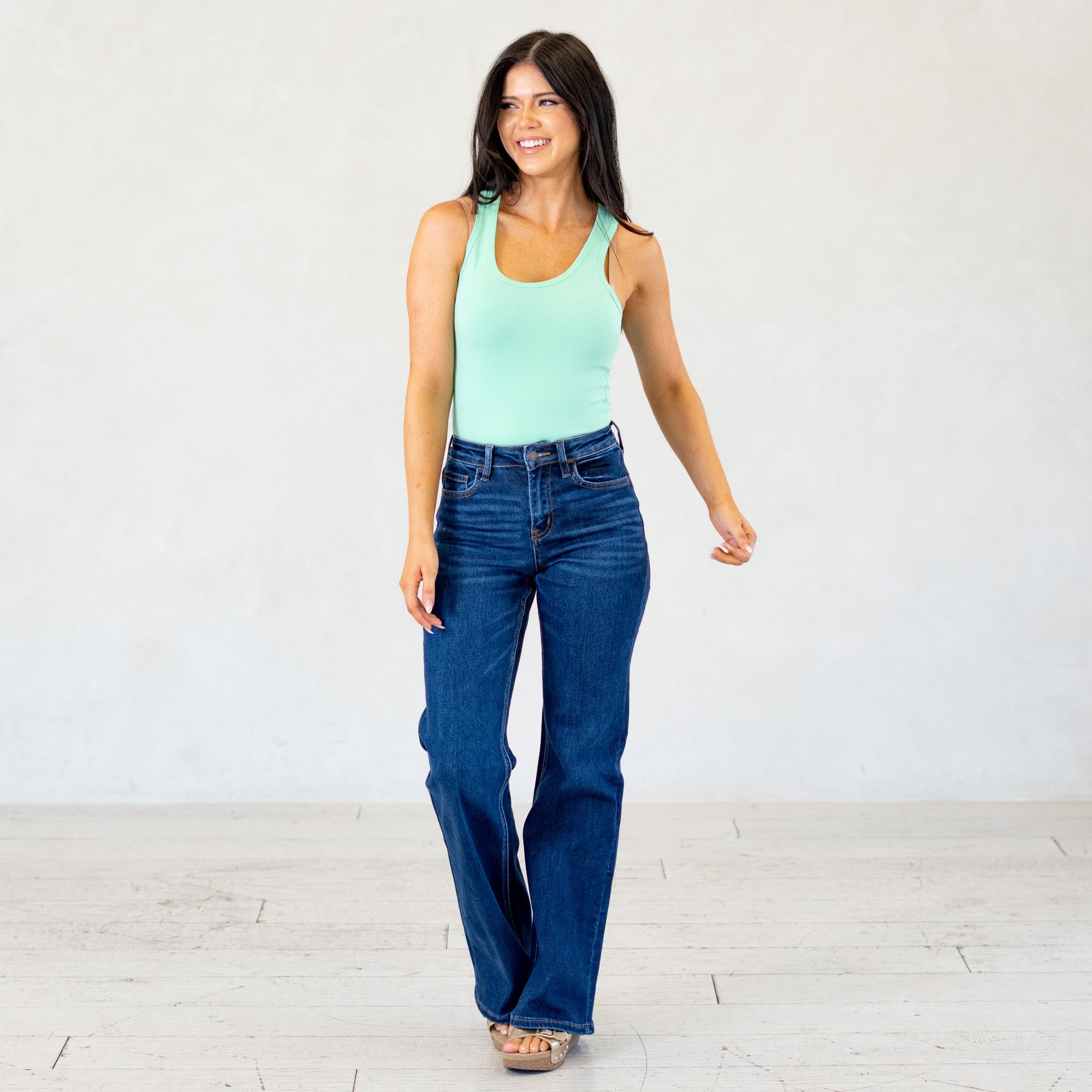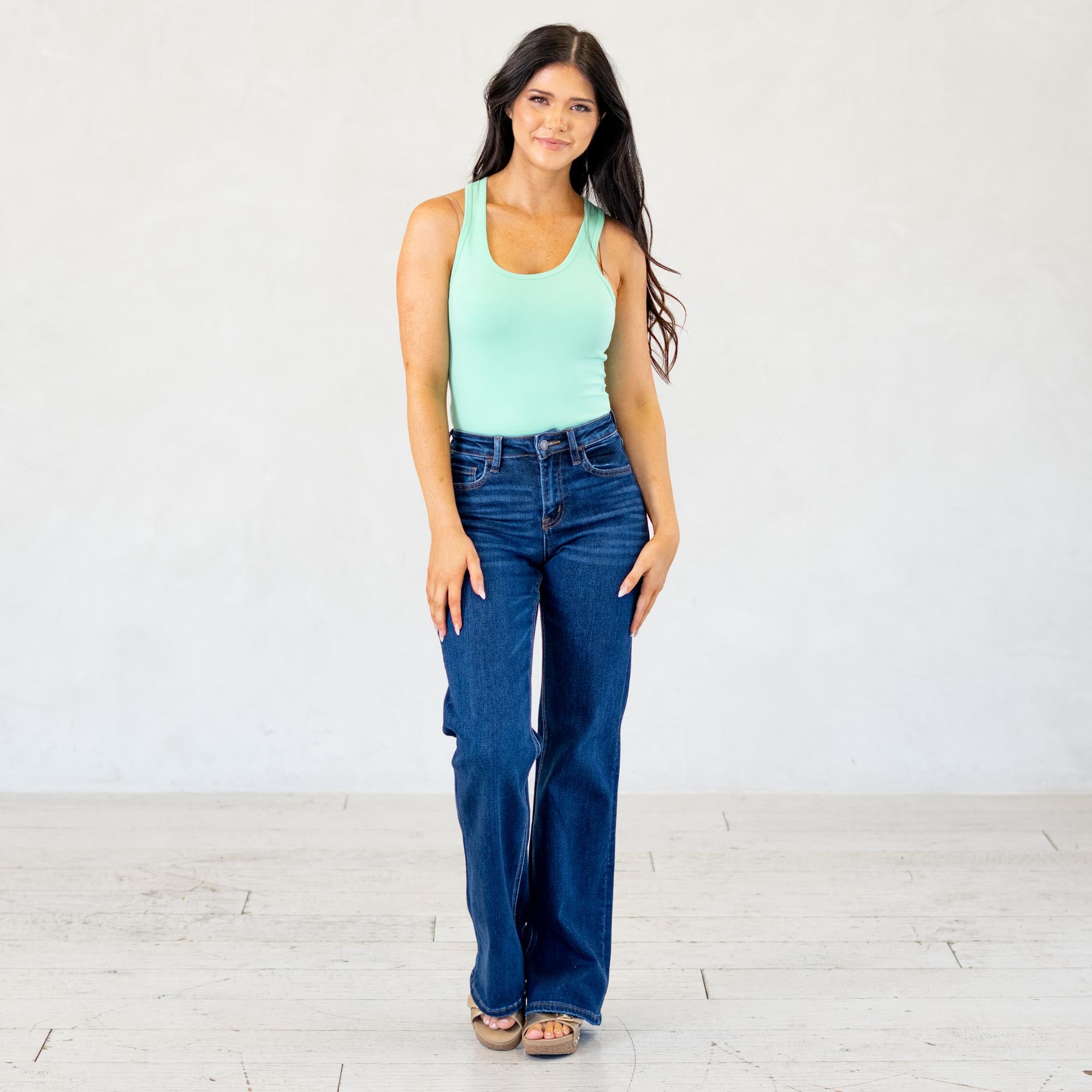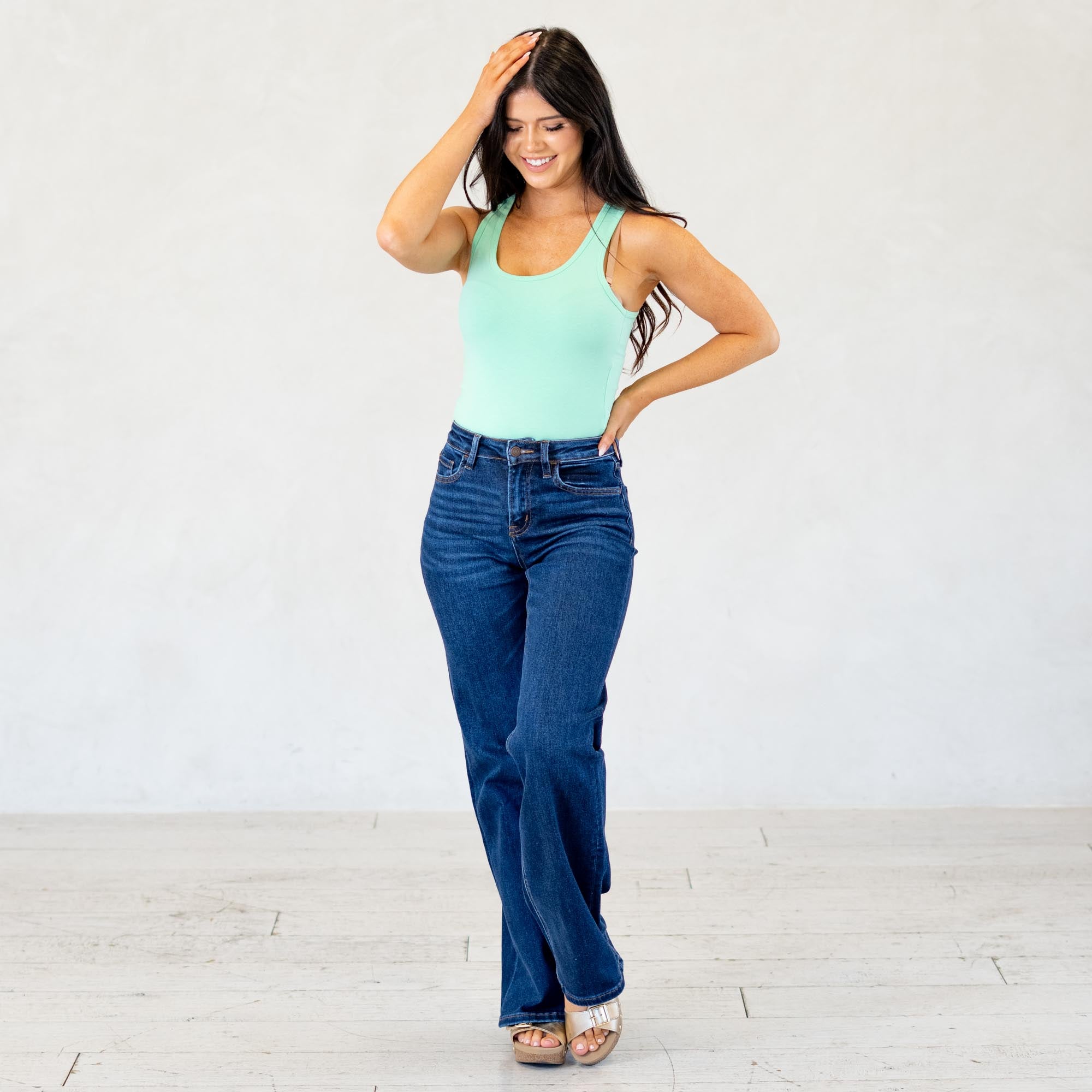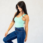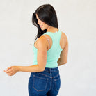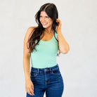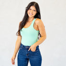 Cotton Racer Back Tank Top Bodysuit Green Mint