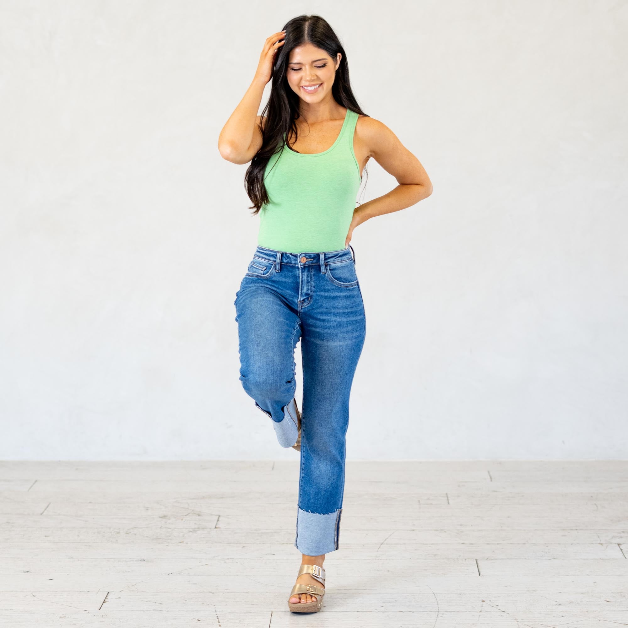 - Racerback design for a flattering, modern fit