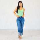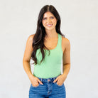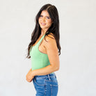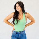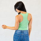 Cotton Racer Back Tank Top Bodysuit Heather Green
