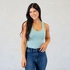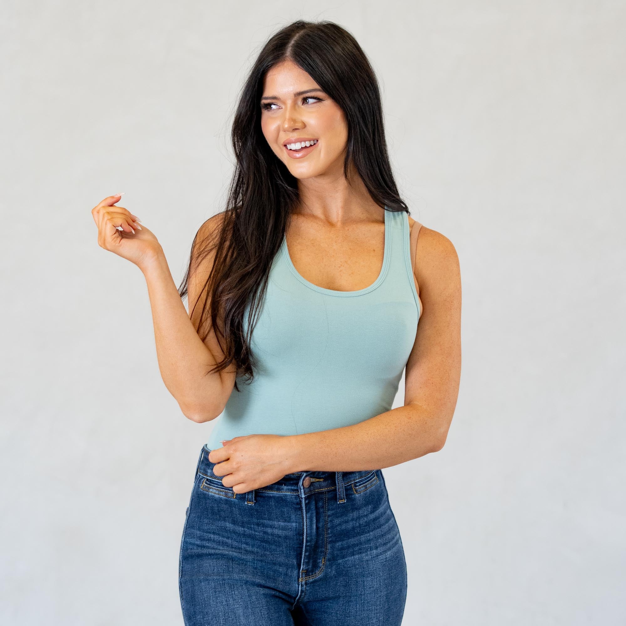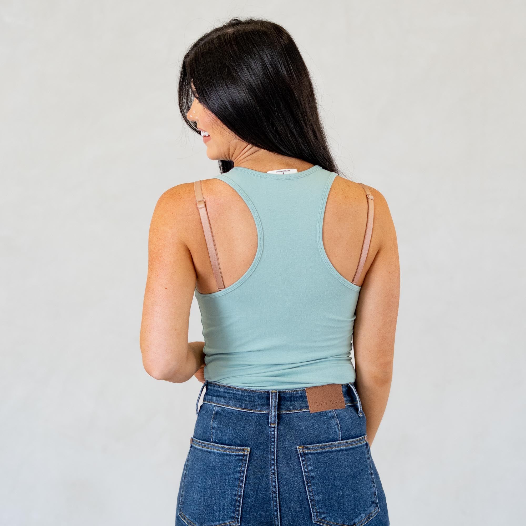 Cotton Racer Back Tank Top Bodysuit Light Green