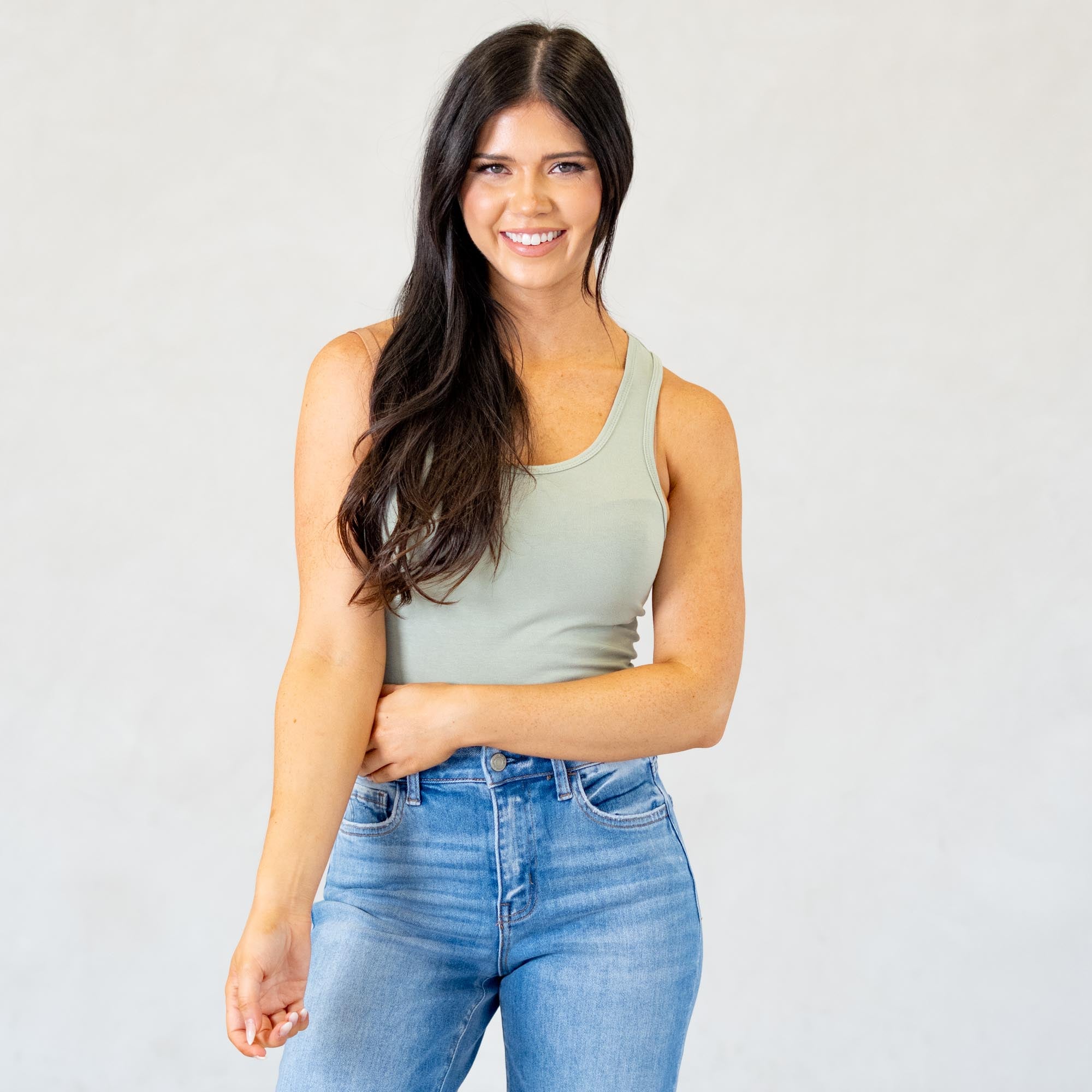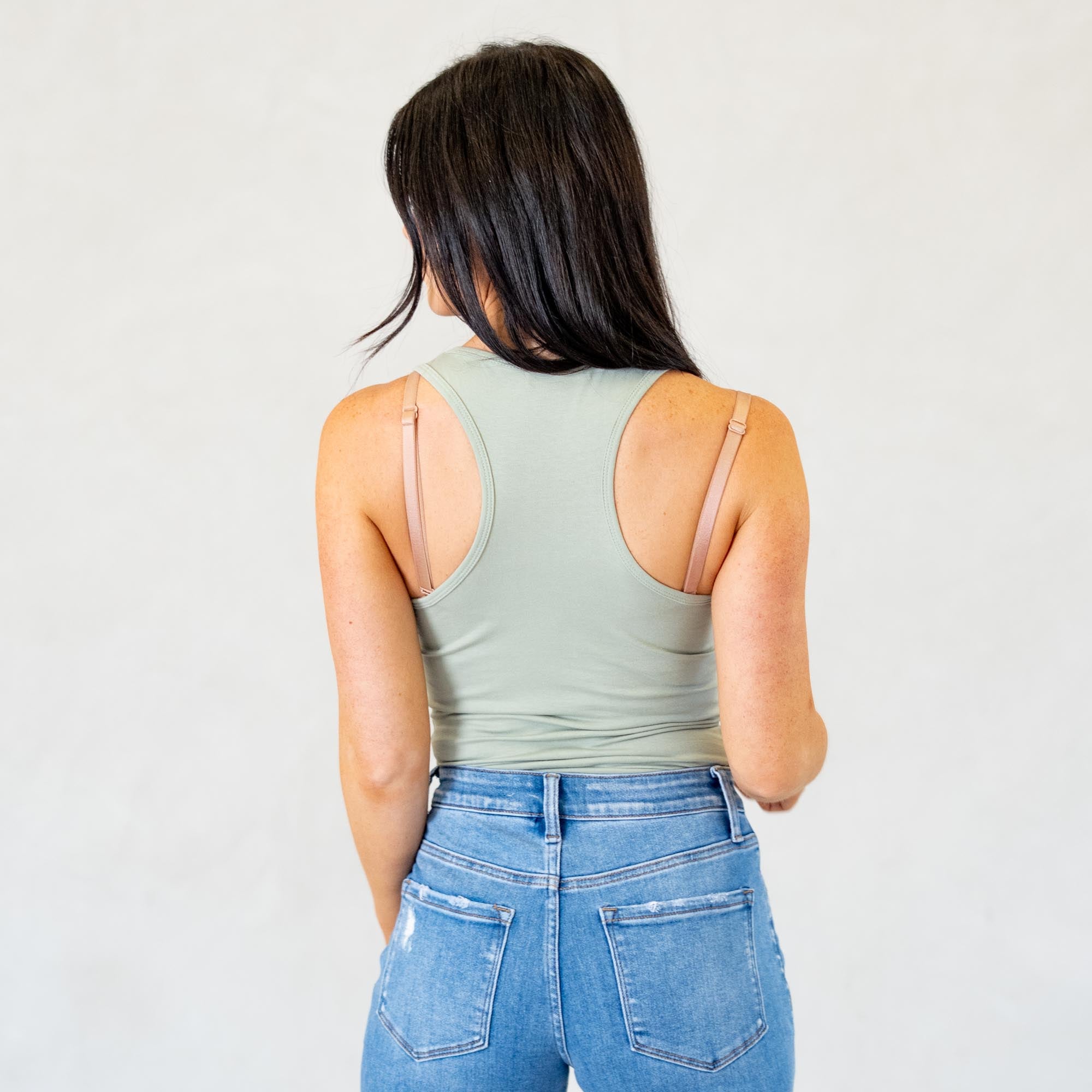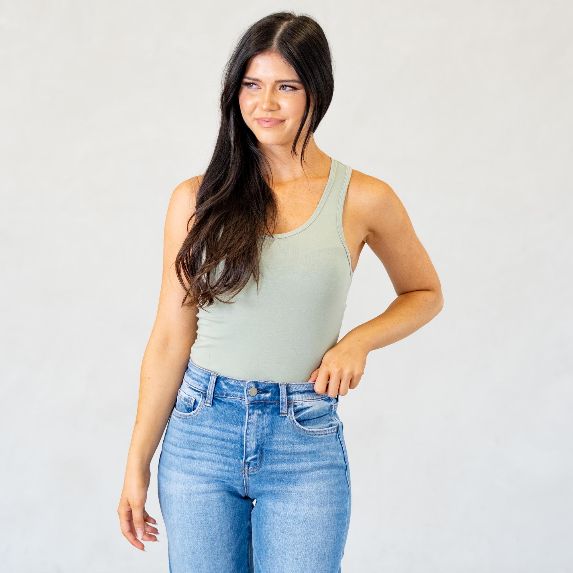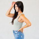 Cotton Racer Back Tank Top Bodysuit Light Sage
