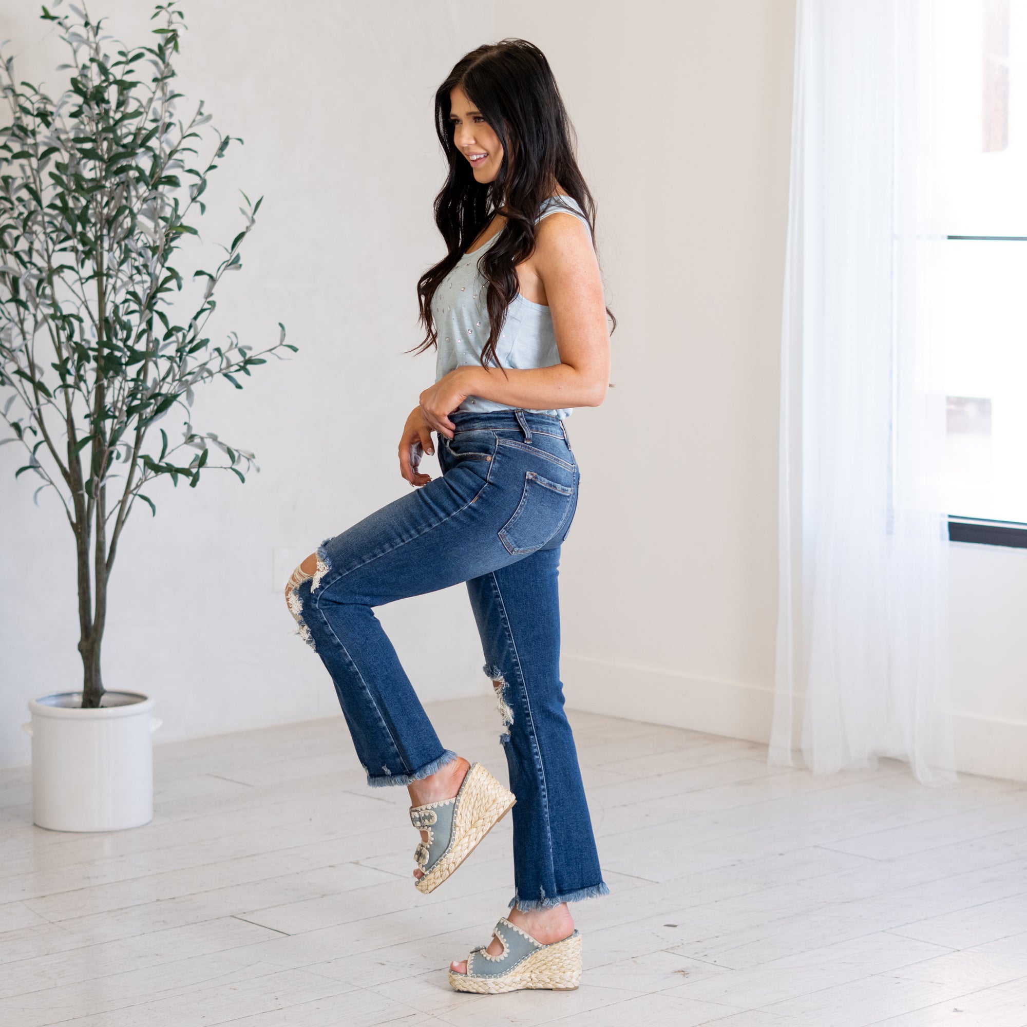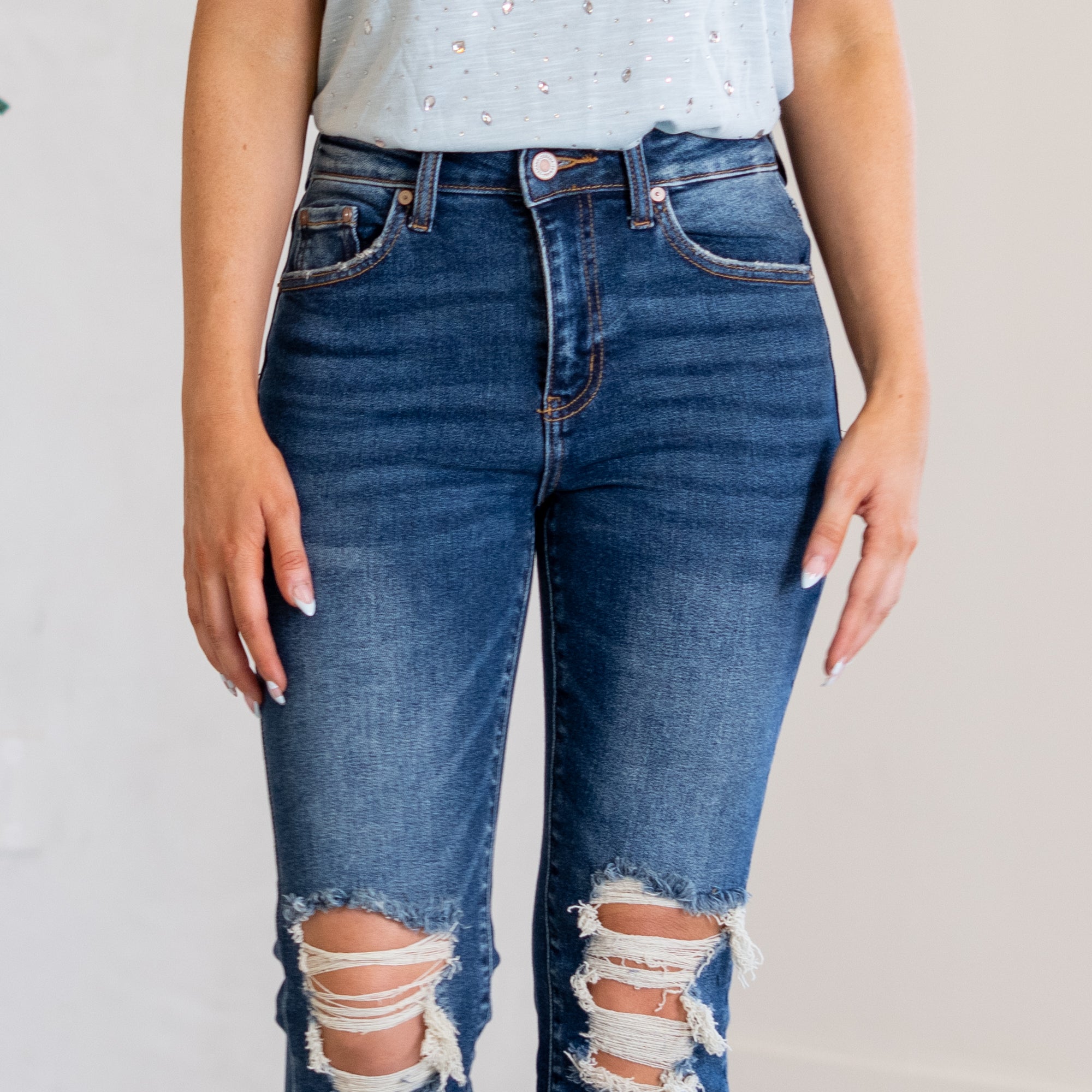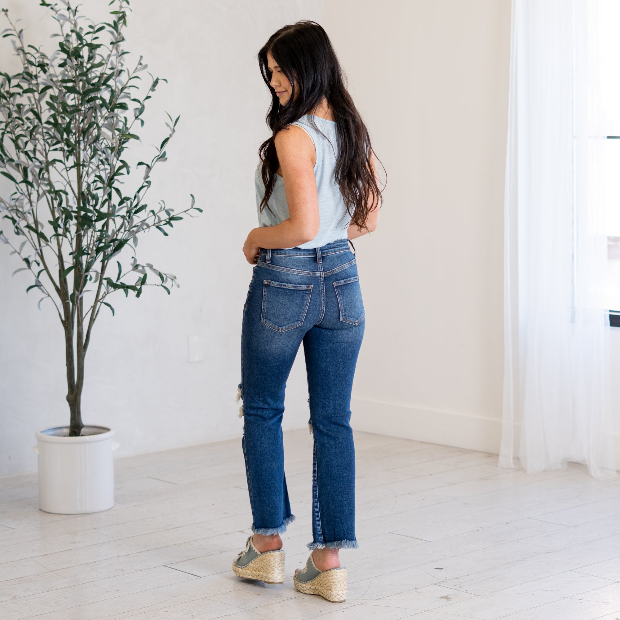 The Dallas jeans are your new denim essential—featuring a mid rise waist, ankle-length cut, and just the right amount of distressing. They blend comfort and cool for a lived-in look that’s ready for anything. From casual days to nights out, these jeans fit right in.