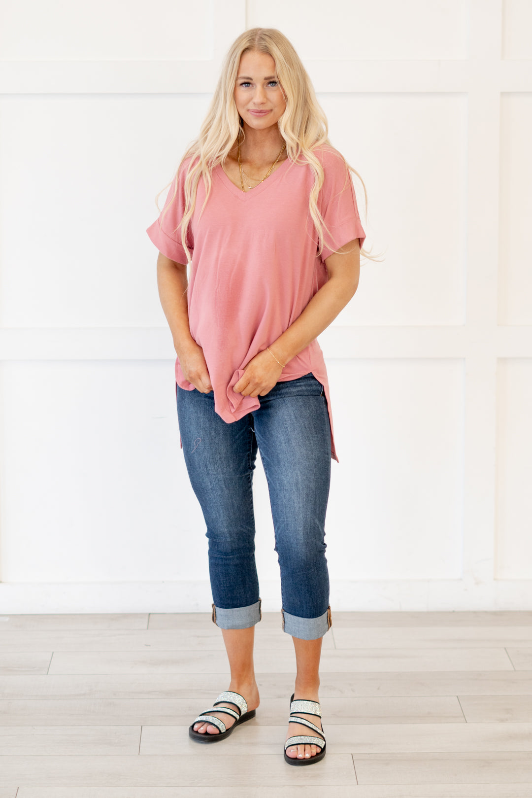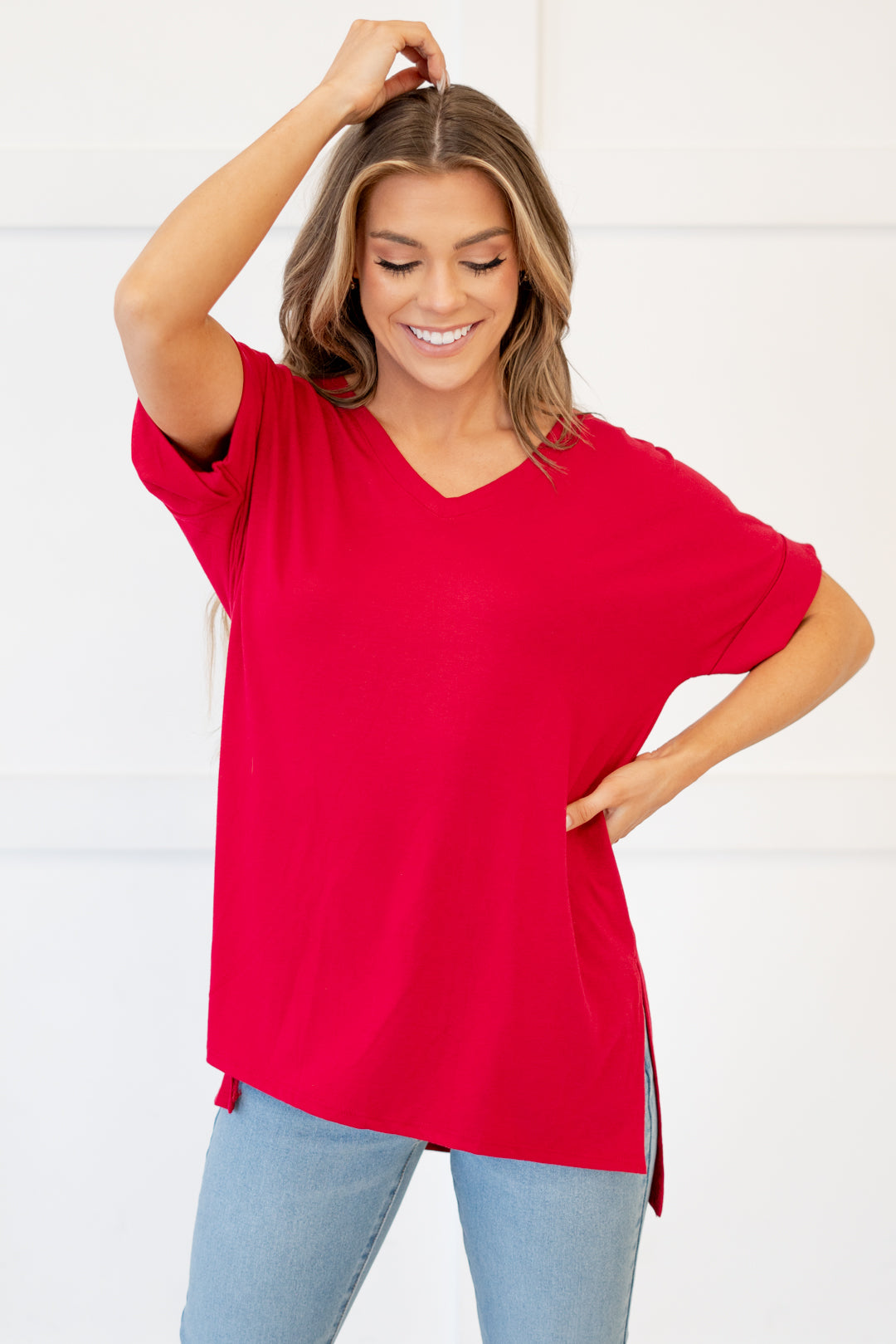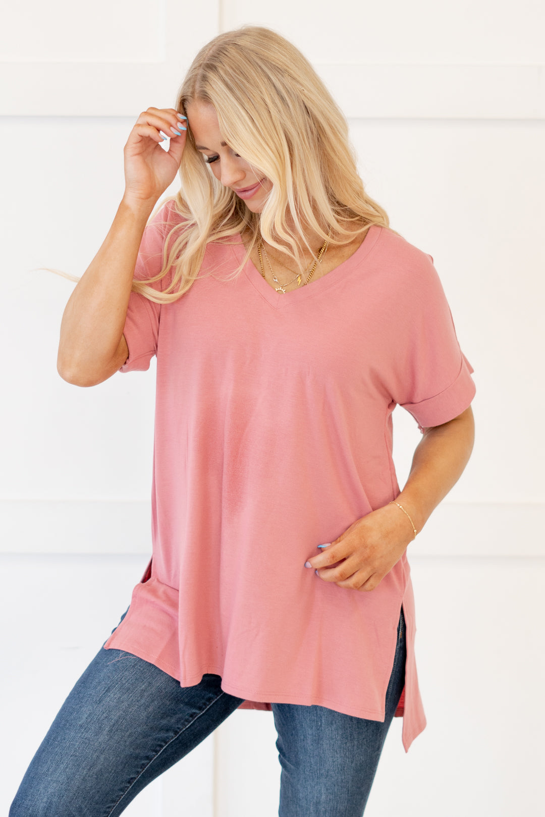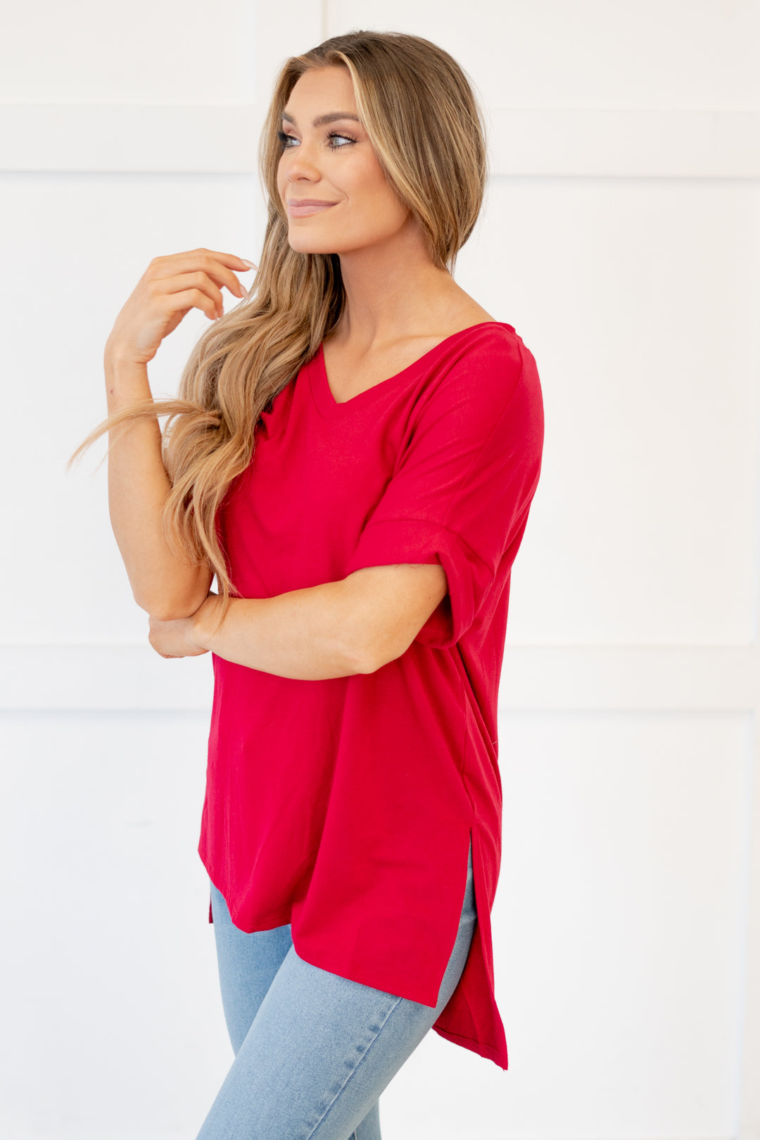 The absolutely perfect v neck tee with oversized folded sleeves.