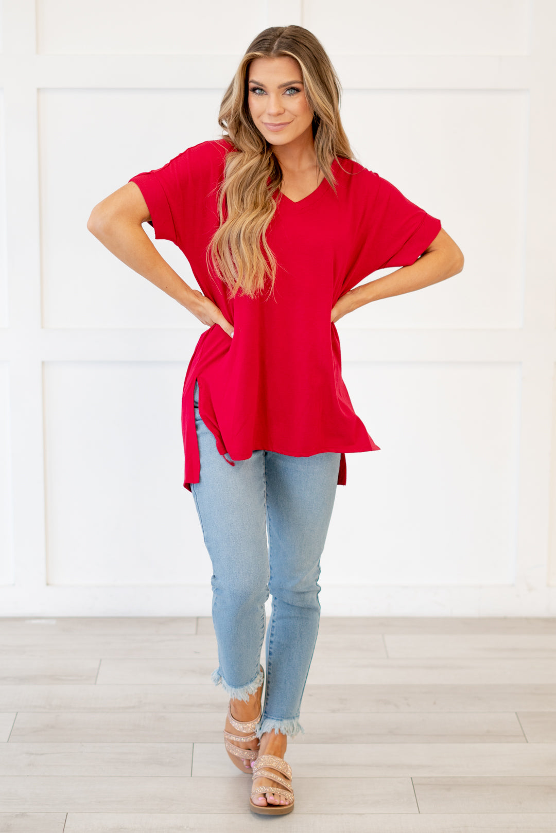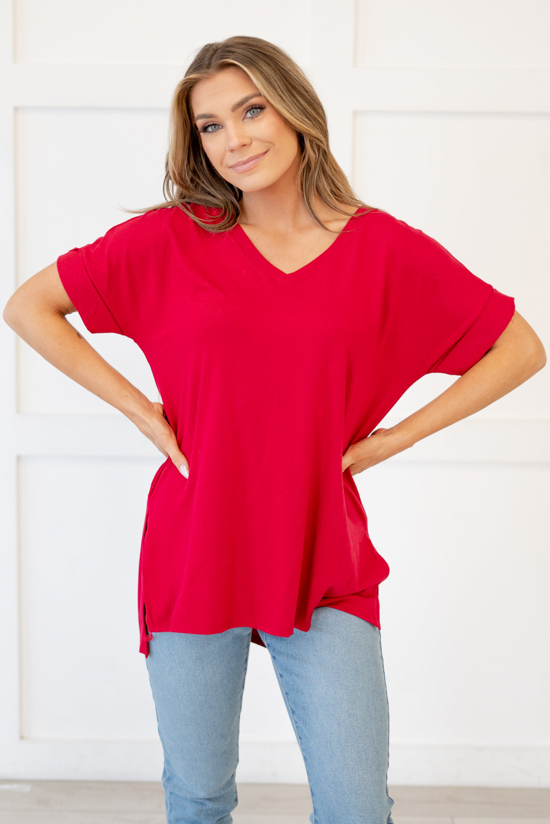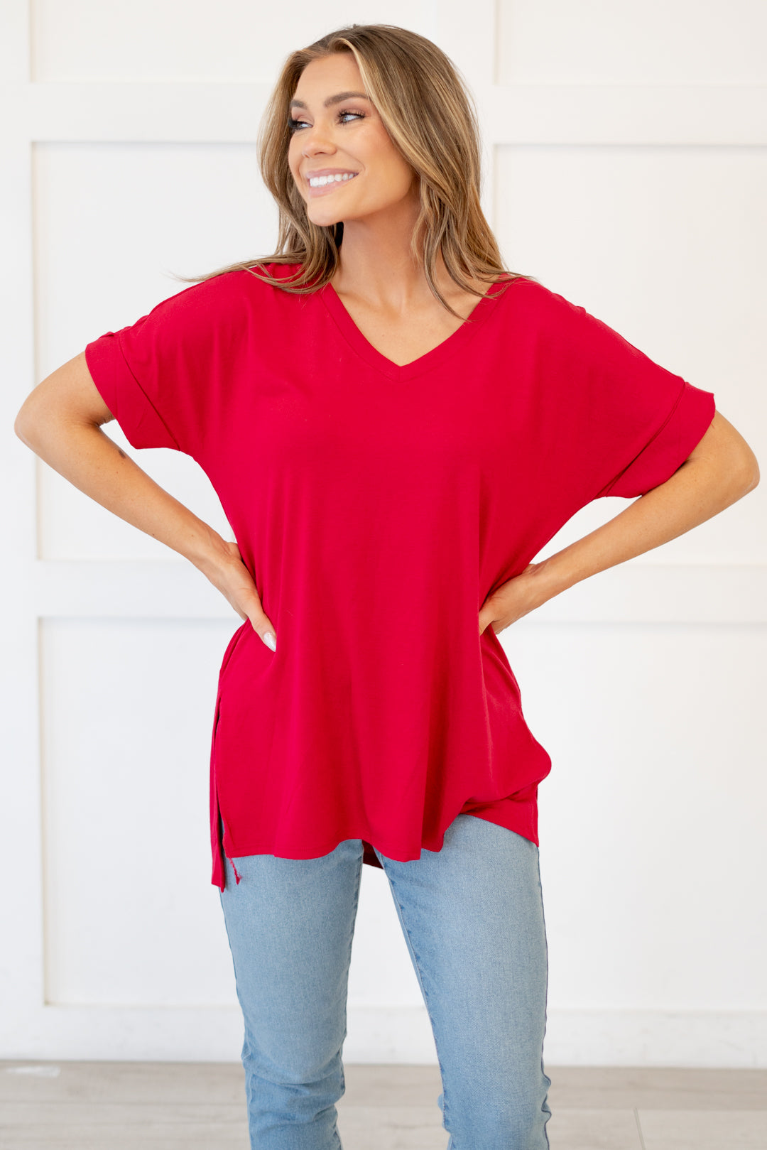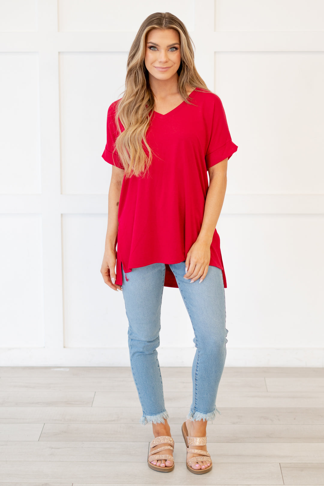 The absolutely perfect v neck tee with oversized folded sleeves.