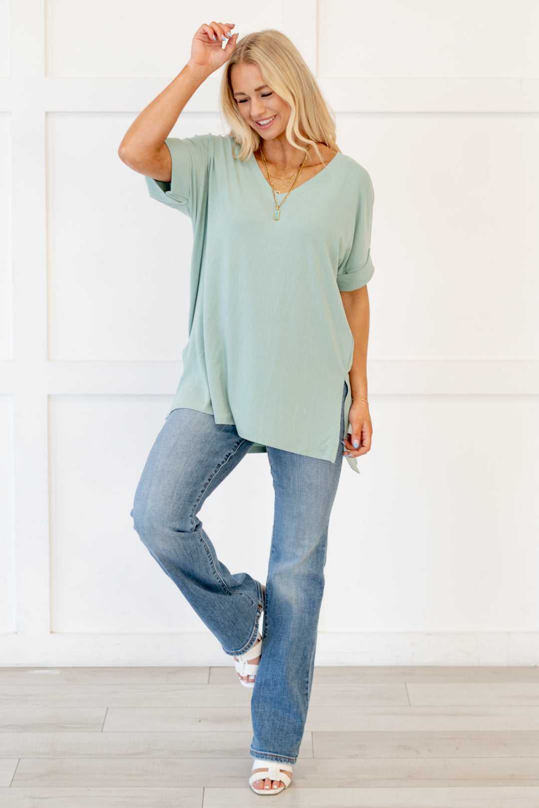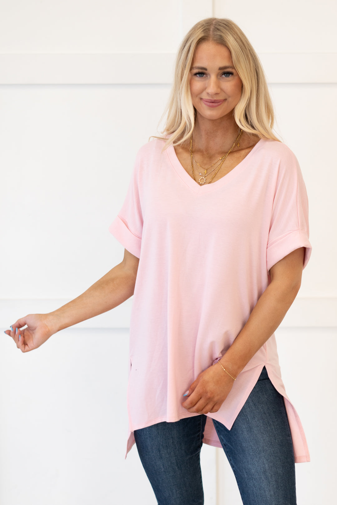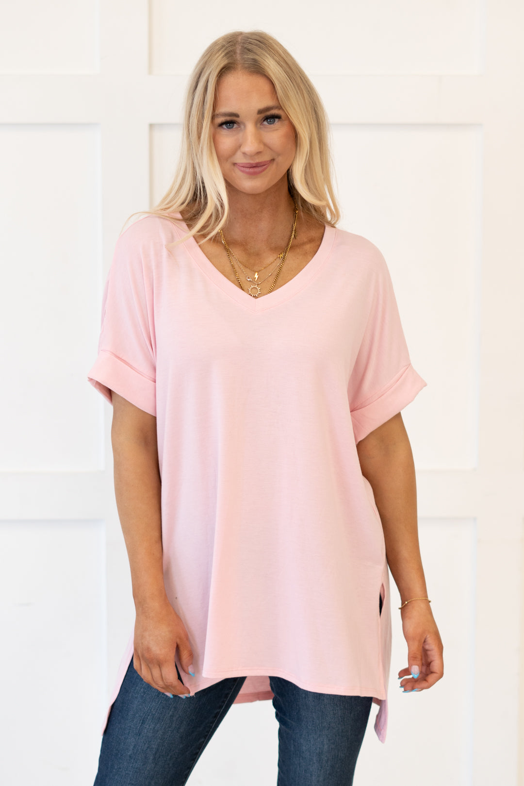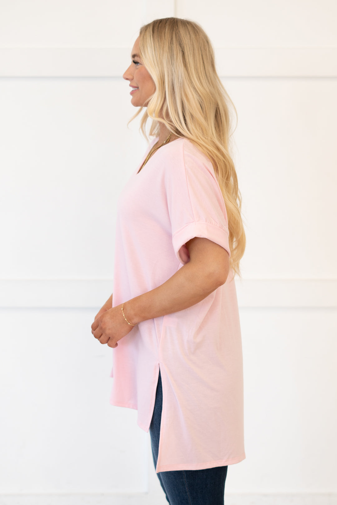 The absolutely perfect v neck tee with oversized folded sleeves.