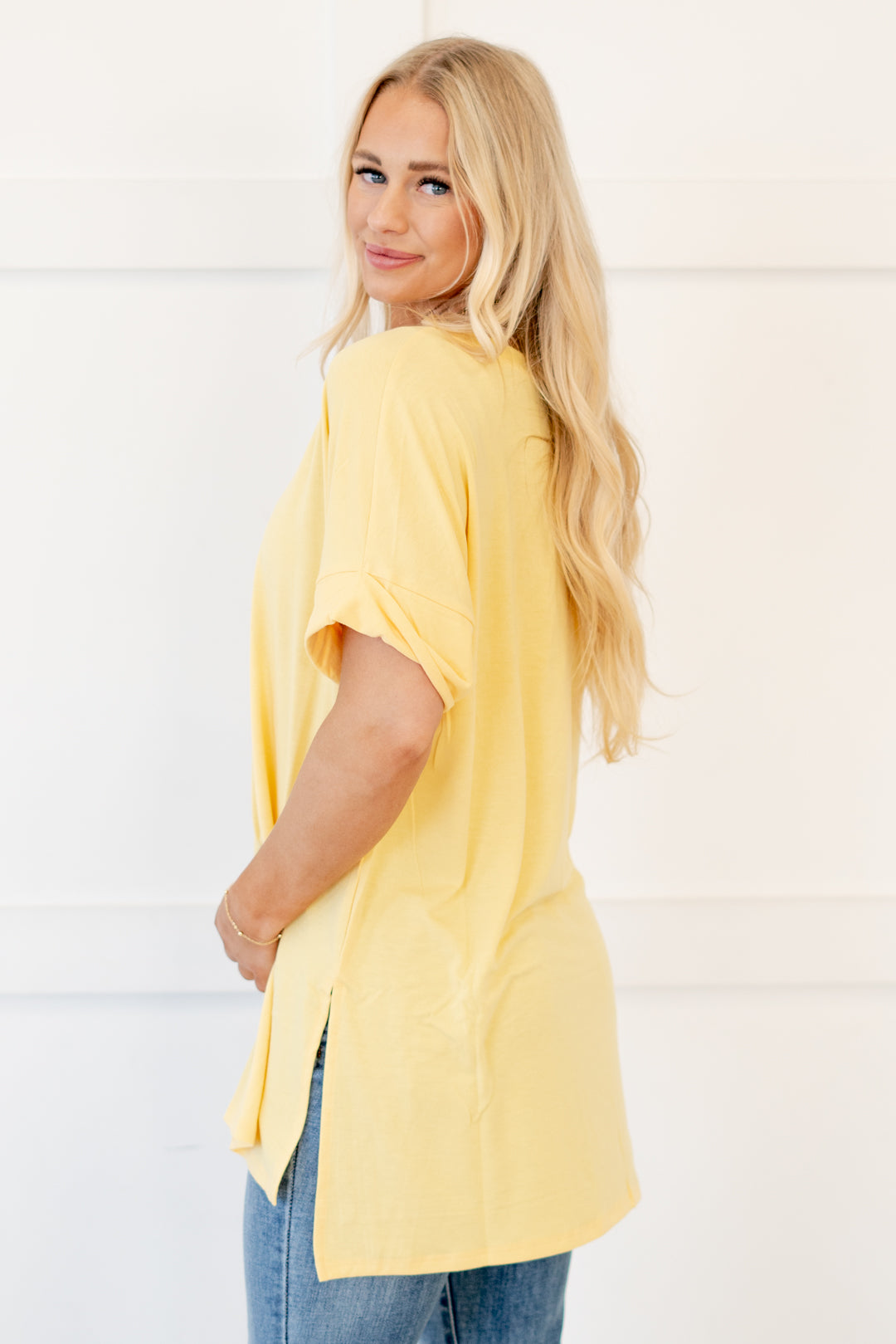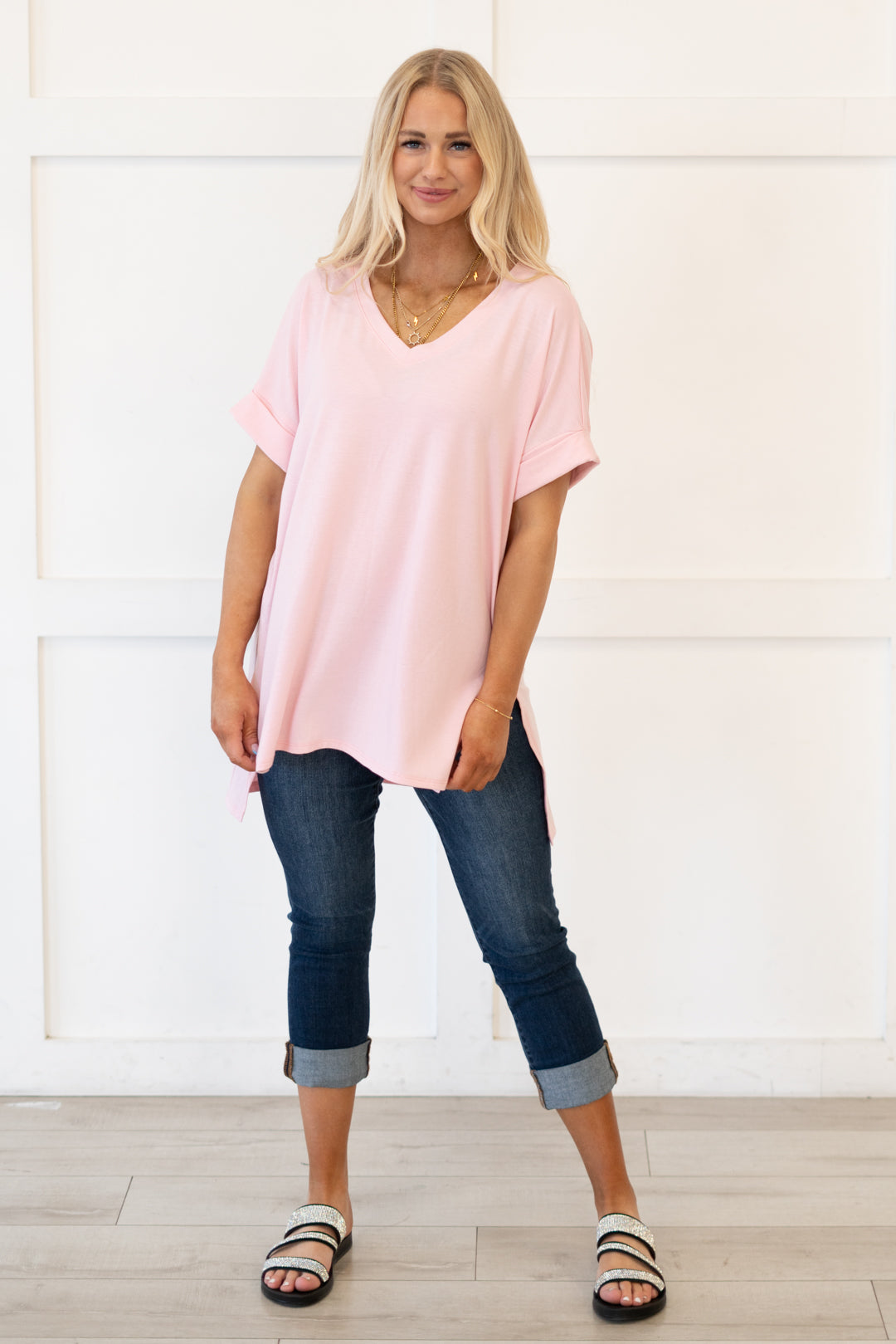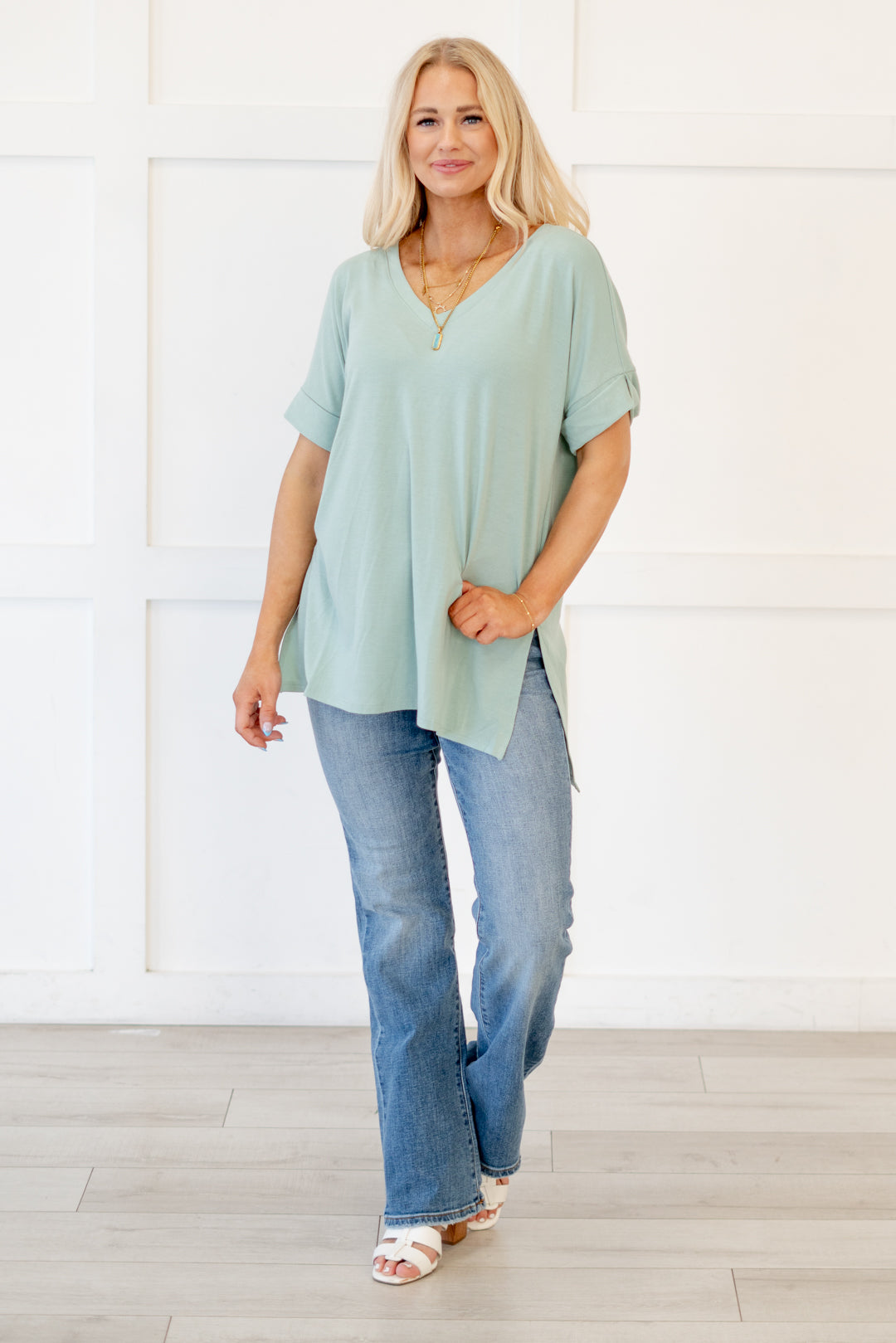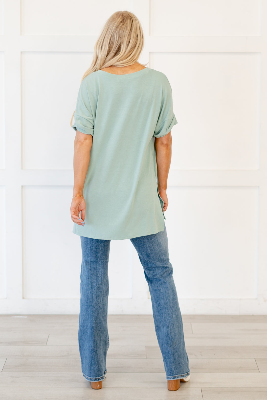 The absolutely perfect v neck tee with oversized folded sleeves.