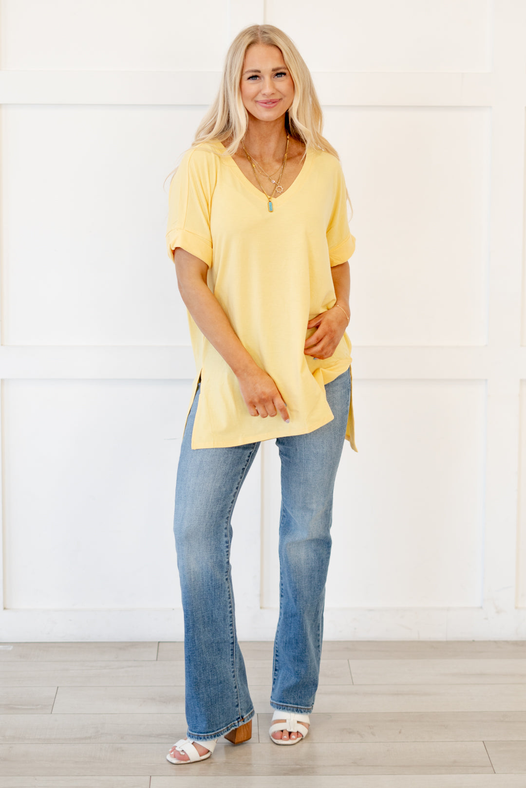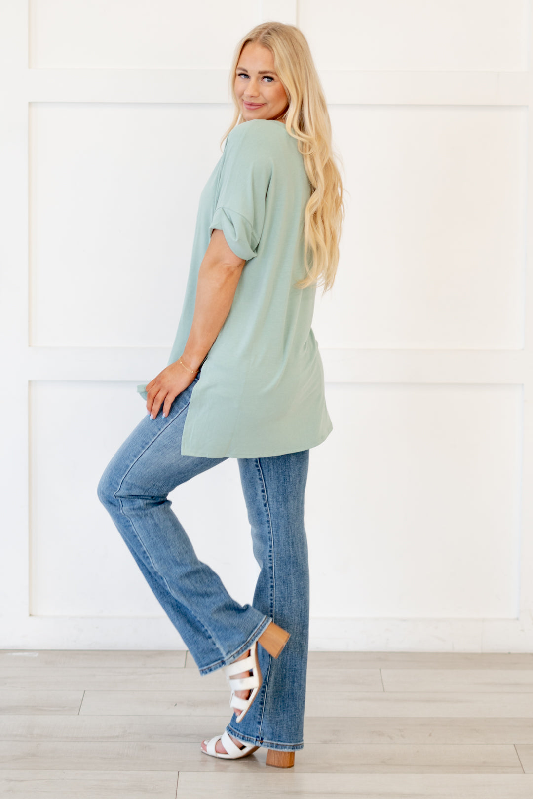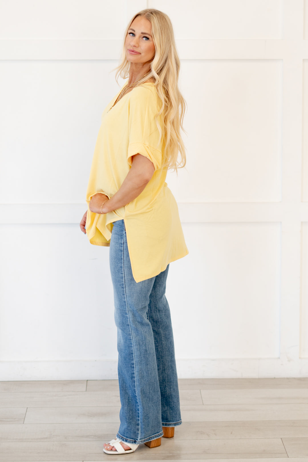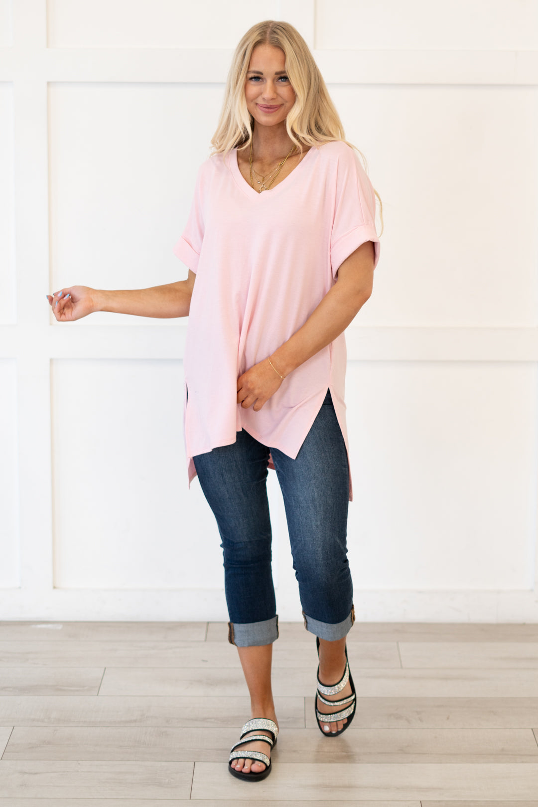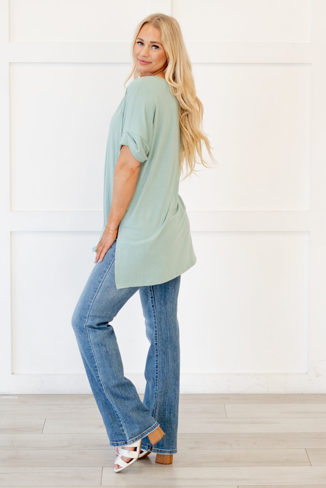 The absolutely perfect v neck tee with oversized folded sleeves.