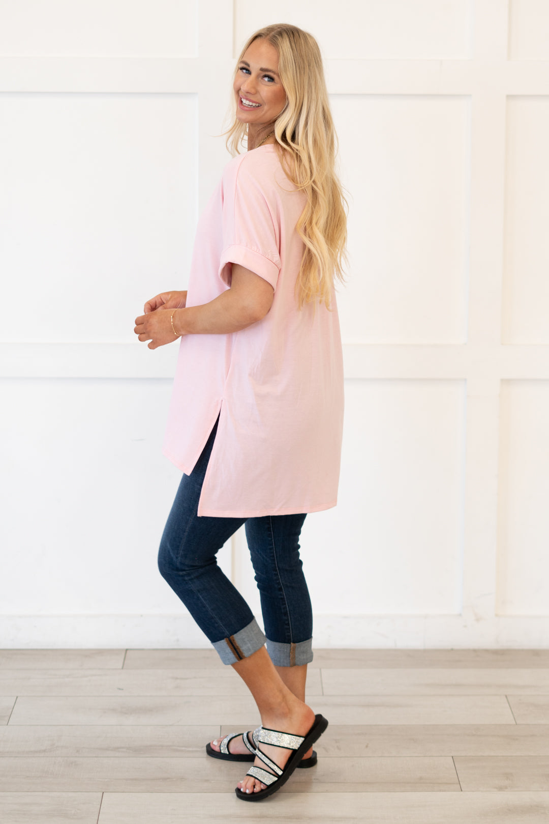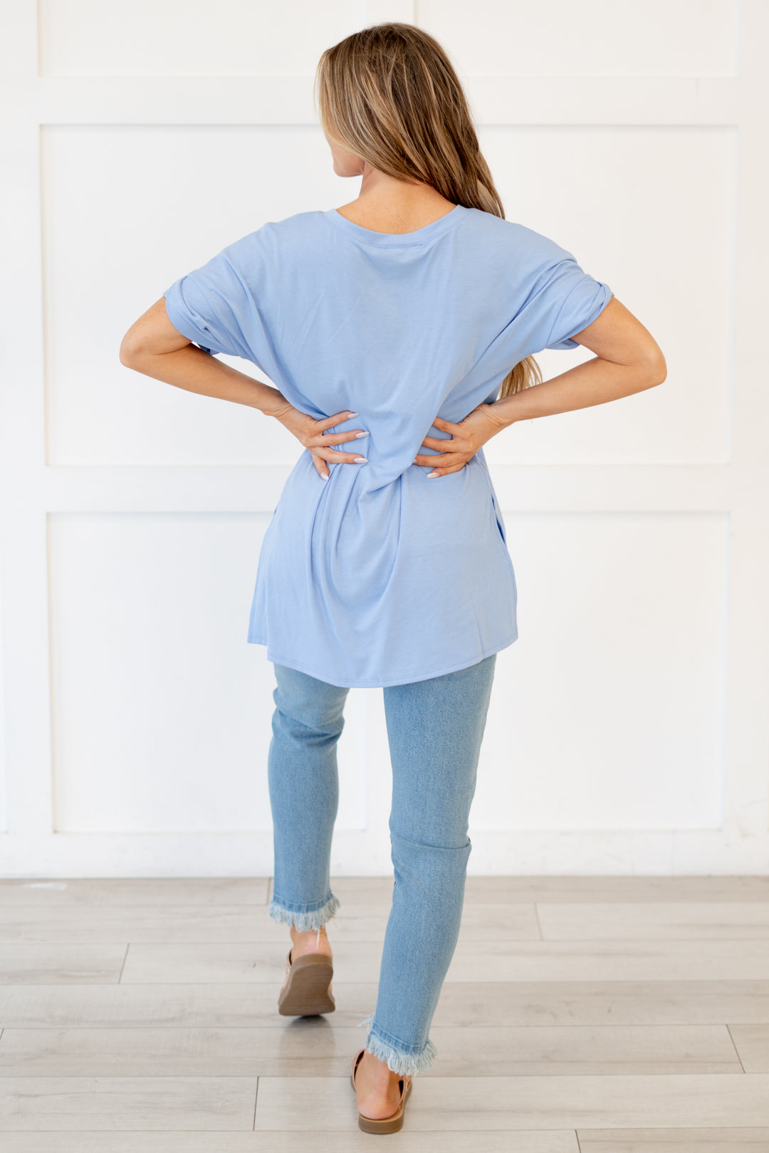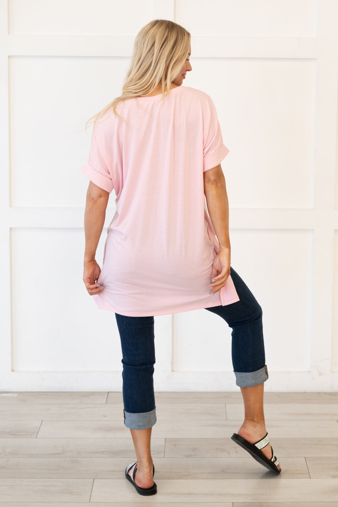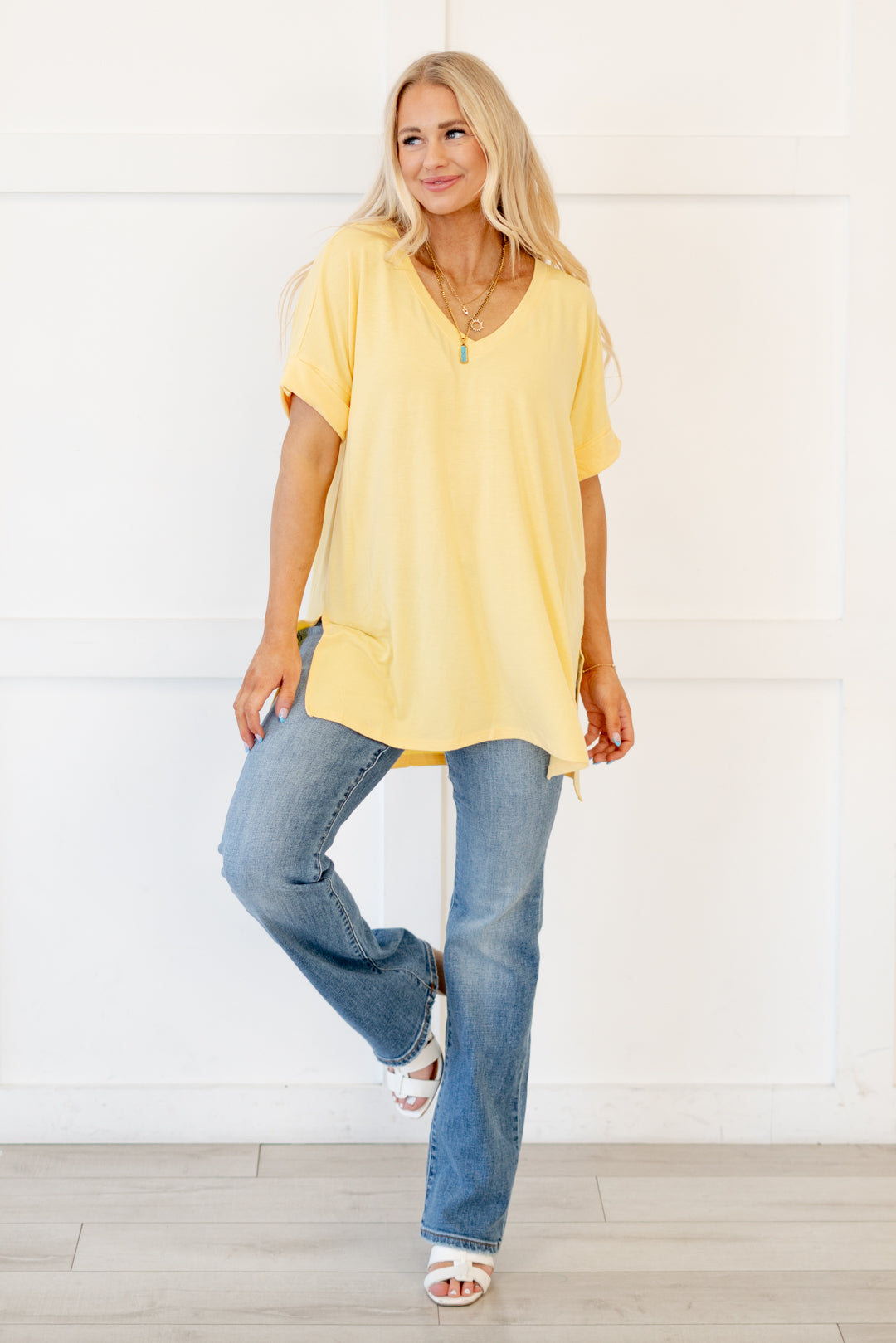 The absolutely perfect v neck tee with oversized folded sleeves.