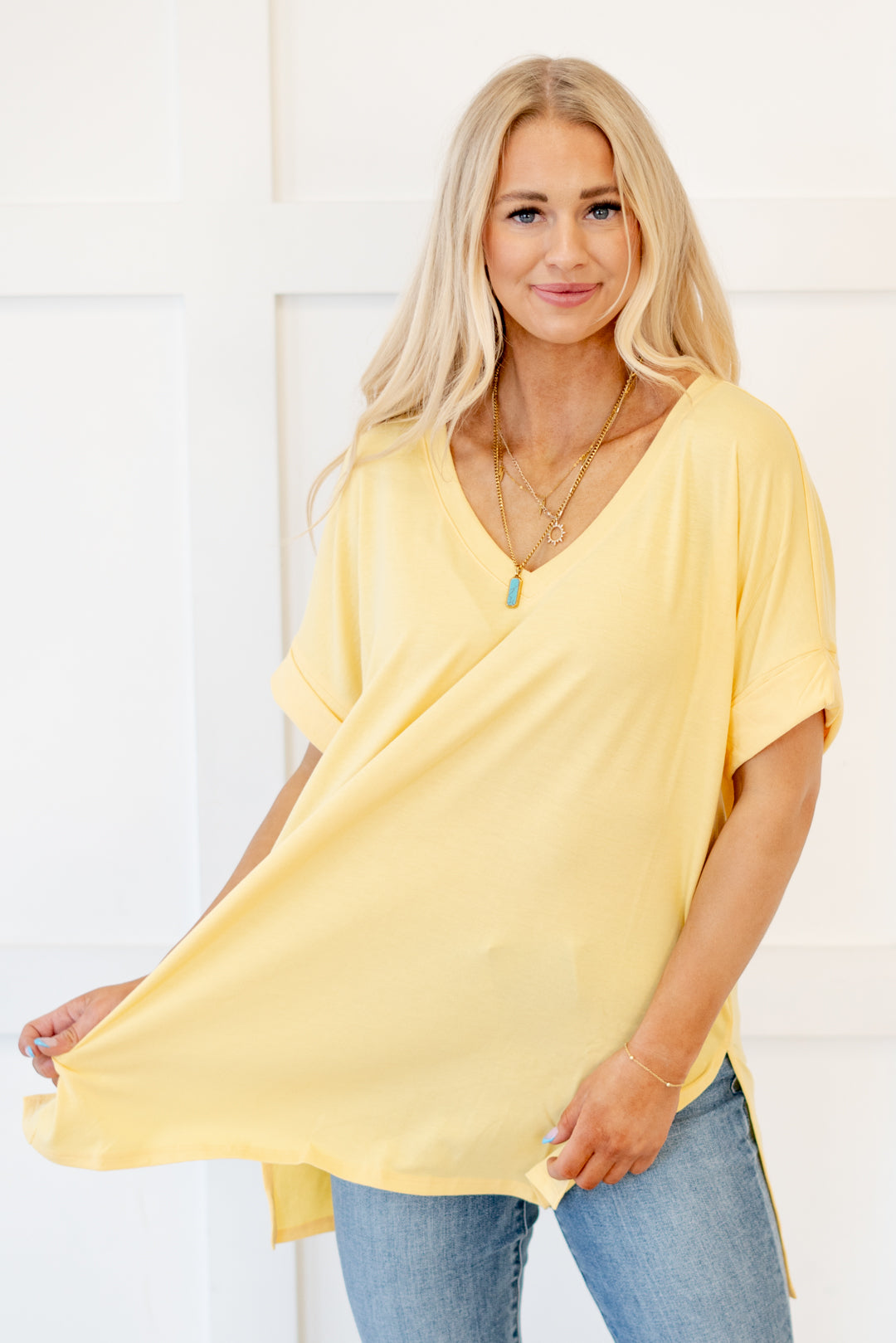 Springs Here! High Low Hem V Neck Top
