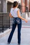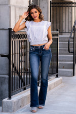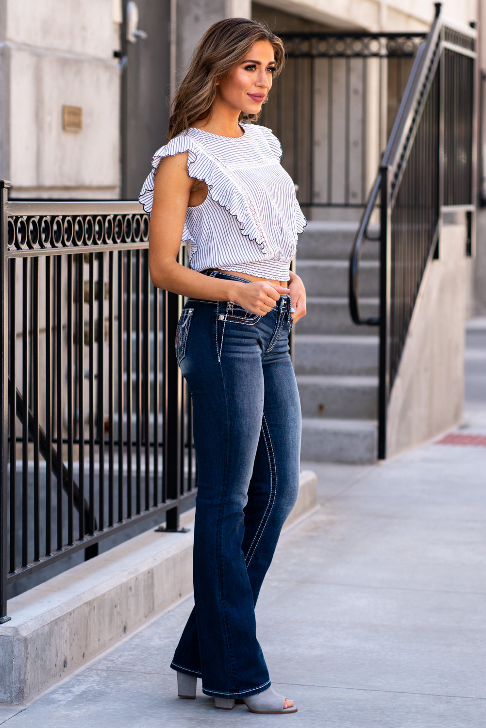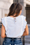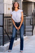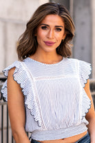 Light and easy, this ruffled smocked top will dress up all of your high waisted jeans.