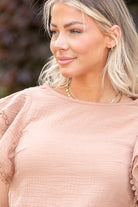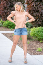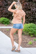 Flutter Sleeve Texture Woven Top - Terra Cotta