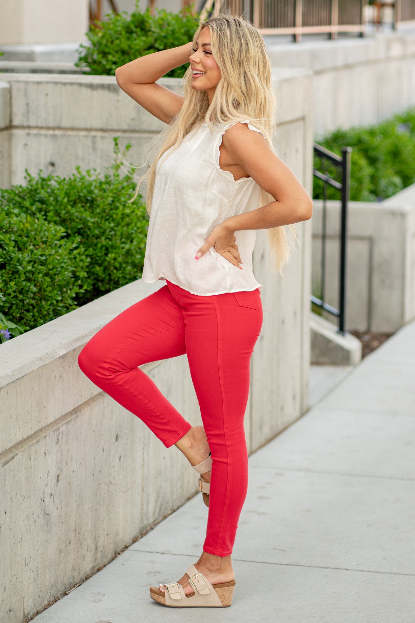 Pin Tuck Ruffle Swiss Dot Blouse - White