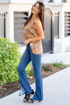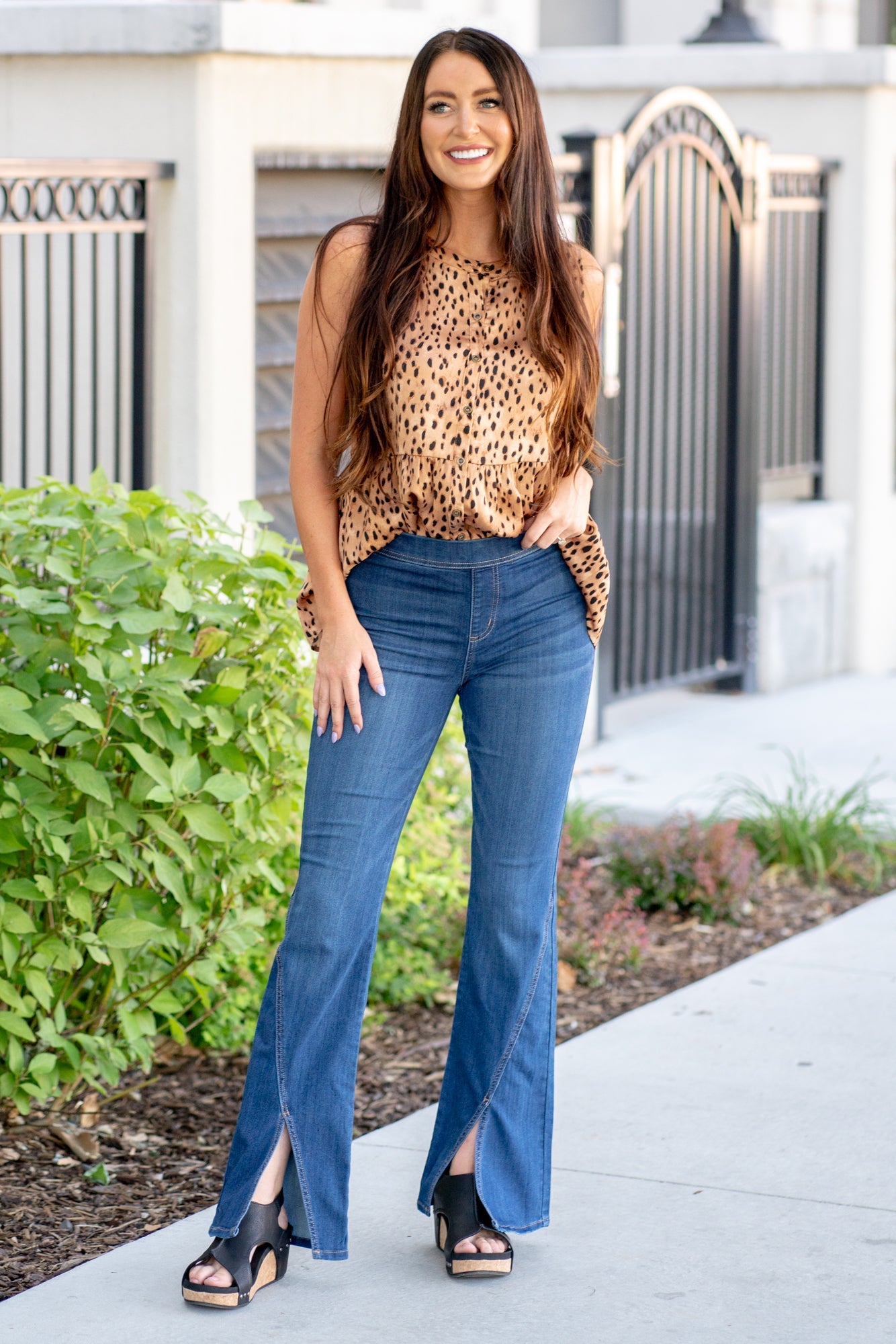 Alexis wears a size 25 in jeans, a small in tops, and 7 in shoes. She is wearing size small in these jeans.