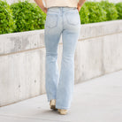 The Abigail Flare is the kind of denim that moves with you and turns heads while doing it. Designed to sit just above the natural waist, this style hugs through the hip and thigh before flowing into a flattering flare at the calf. Subtle distressing adds a touch of edge, while the buttery-soft stretch denim keeps things comfy and curve-loving all day long. Finished with a classic five-pocket design and single-button front for that effortlessly polished look.
