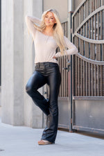 KanCan Allie Mid Rise Flare in Pleather Pants Black
