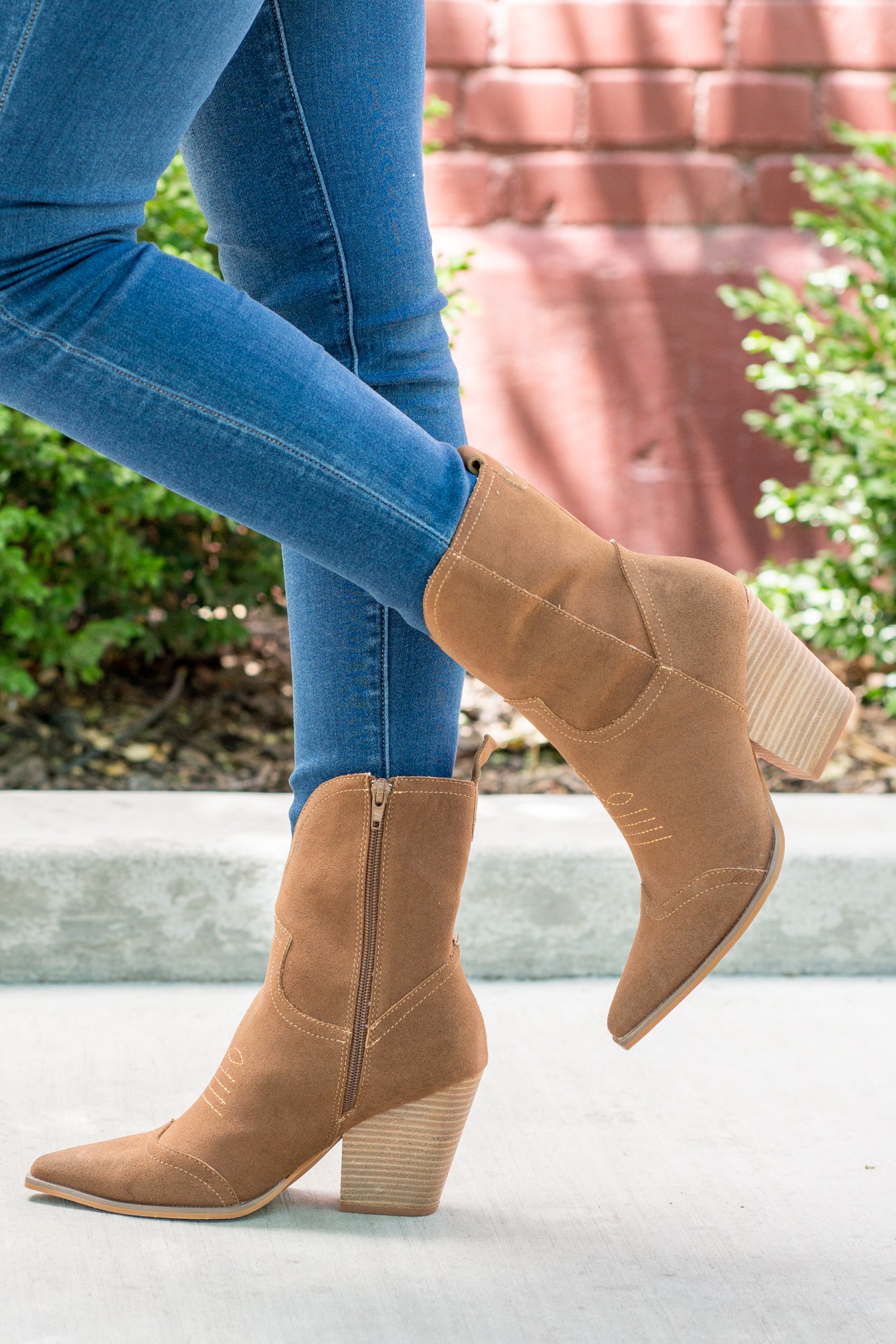Curved hem, riding heel and a slightly lifted pointed toe. This modest boot hits all the right notes in capturing that classic western flair.