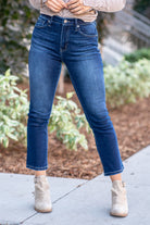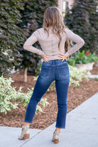 Jacquelyn wears a size 25 in jeans, a small in tops, and 6.5 in shoes. She is wearing a size 25 in these jeans.
