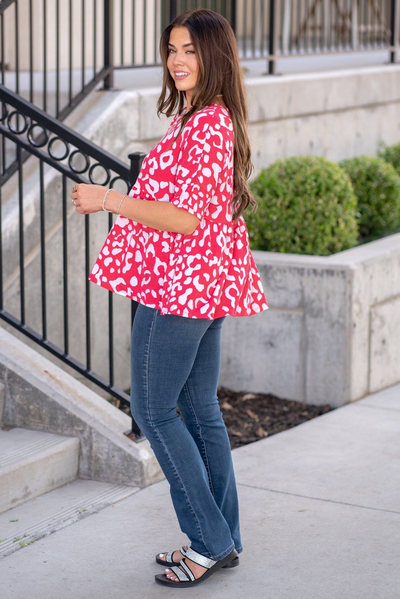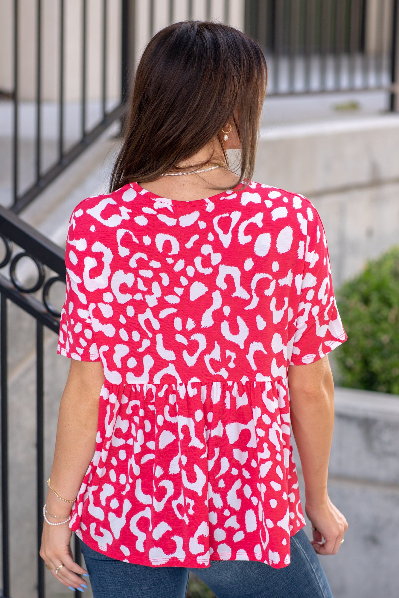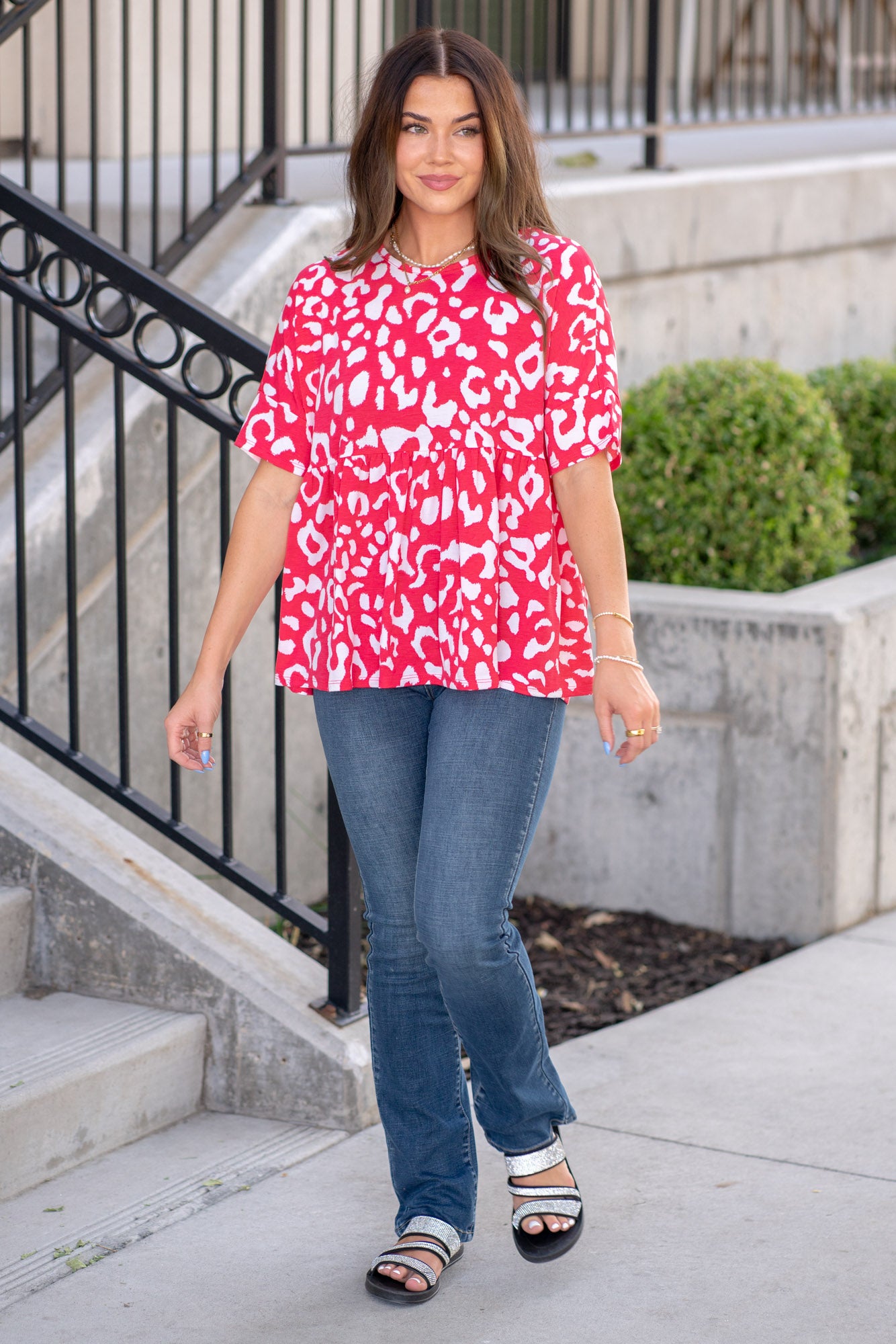 This Leopard Peplum Babydoll Blouse is a fashion-forward statement piece for your wardrobe. The leopard print adds a bold and trendy touch to the feminine babydoll silhouette. With a peplum hem, this blouse offers a flattering and stylish fit. Perfect for adding a touch of flair to your outfit, this blouse can be dressed up or down with ease. The combination of leopard print and peplum detailing creates a chic and eye-catching look. Elevate your style with this fashionable and versatile blouse that effortlessly combines modern trends with a classic silhouette.
