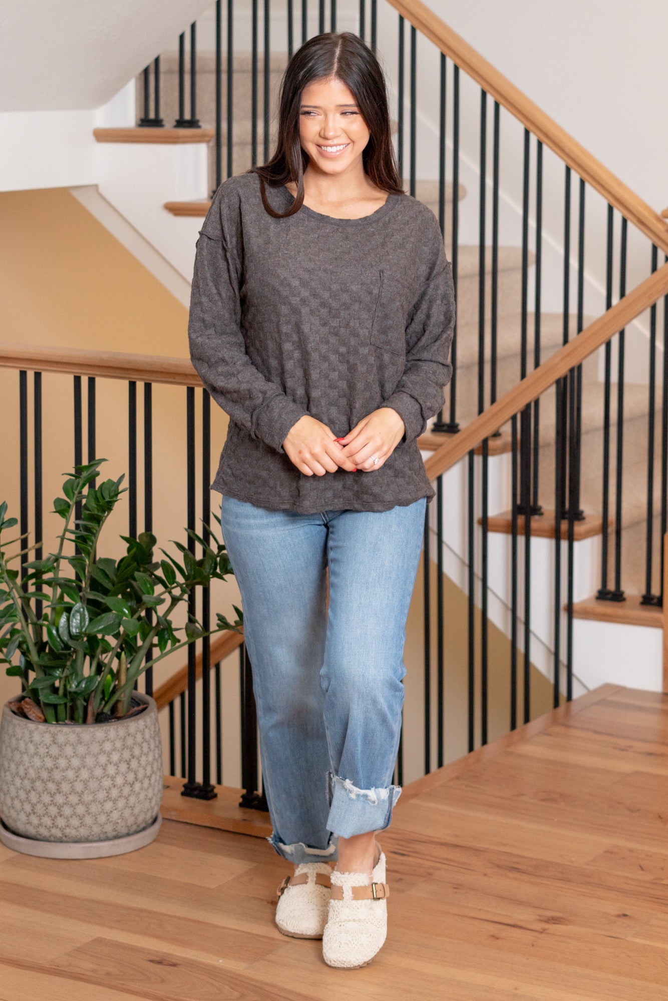Brushed Checkered Pocket Top - Black