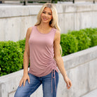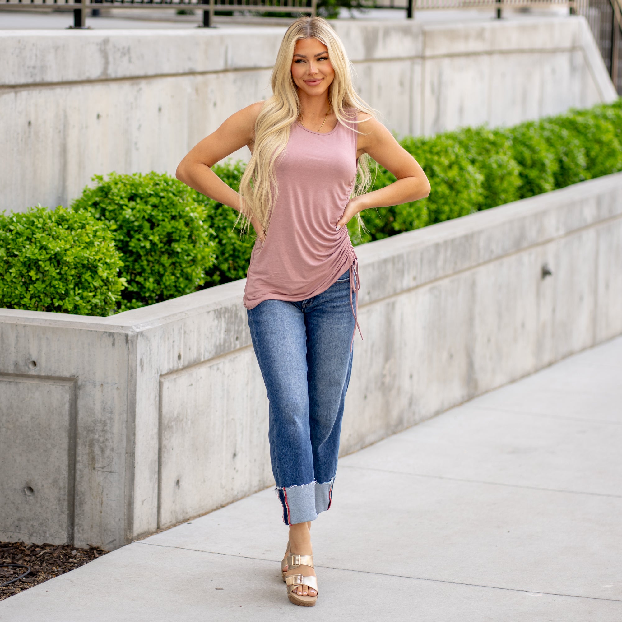 Laid-back never looked so good. The Coastal Cool Drawstring Tank is made from soft washed jersey knit with an easygoing fit and side drawstring details that let you cinch it up for the perfect vibe. Lightweight, comfy, and effortlessly cute—just throw it on with denim shorts or wide-leg pants and you’re weekend-ready.