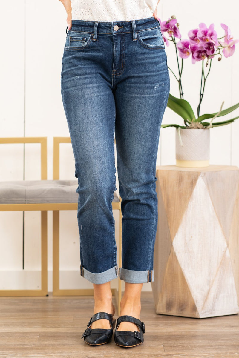 Stretchy denim with a slouchy relaxed fit makes these boyfriend jeans comfortable for everyday wear.