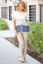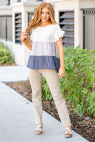 This top makes a statement with ruffle sleeves and color block design. She's comfortable for all day wear, has a figure-flattering fit and features the cutest ruffle details. Style effortlessly with jeans shorts.