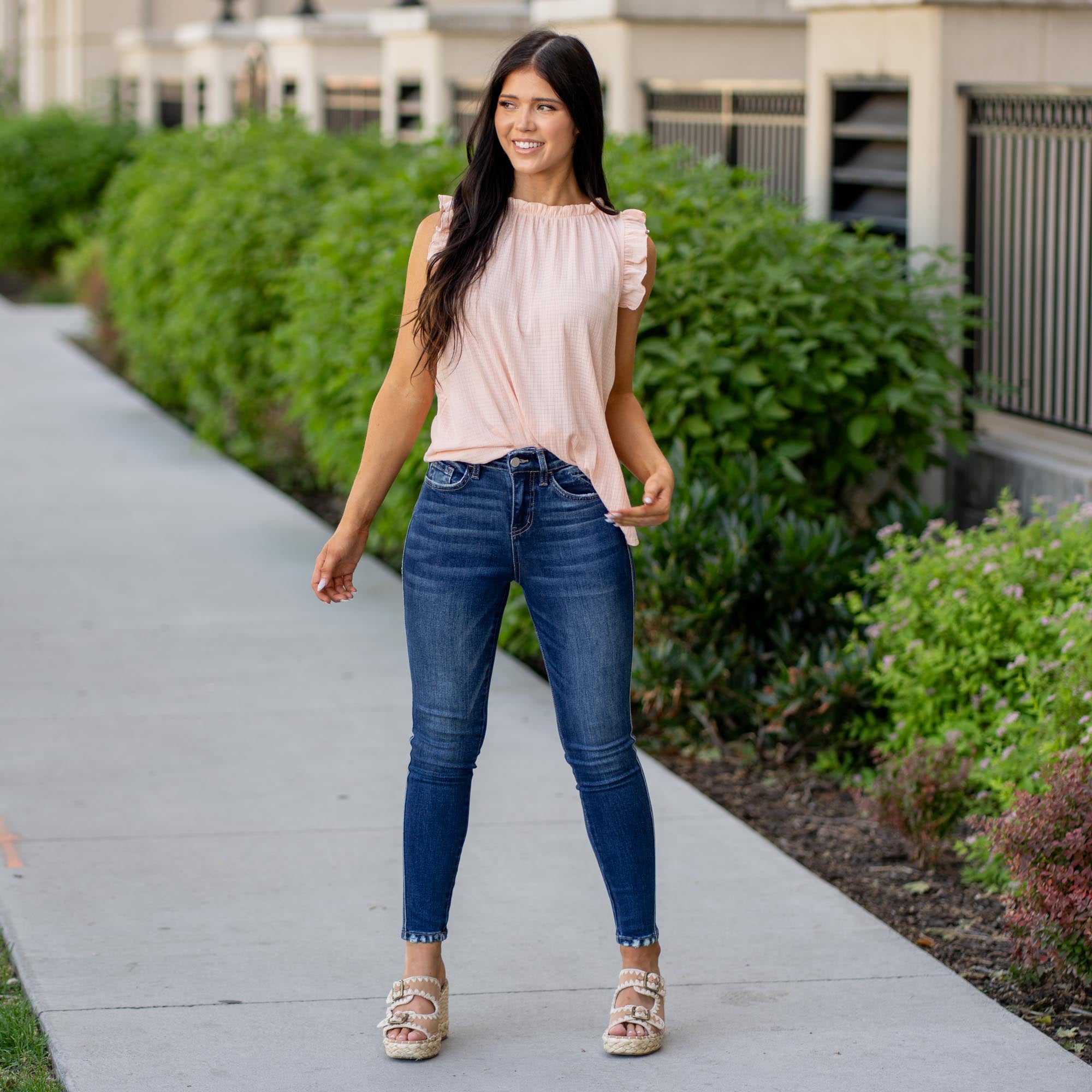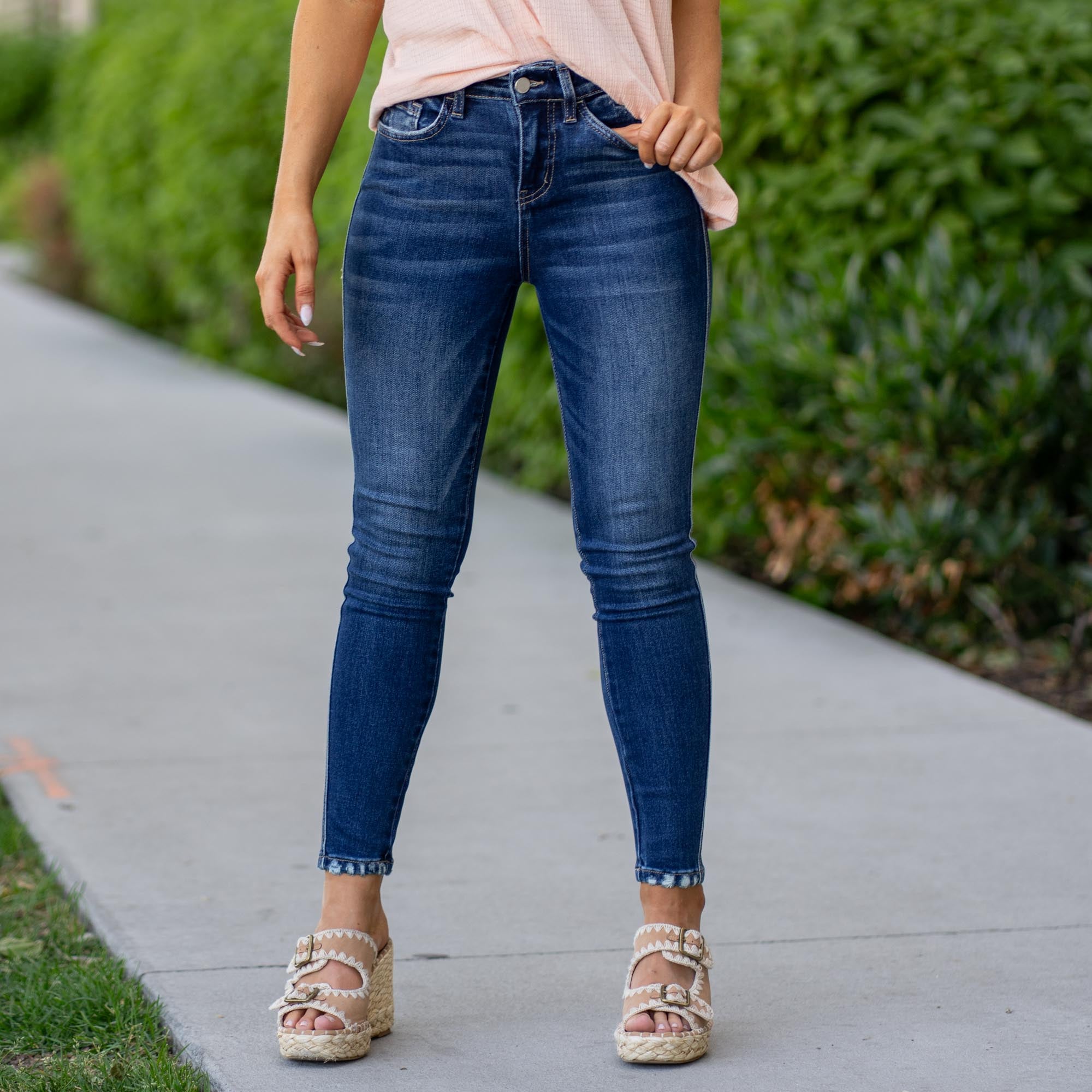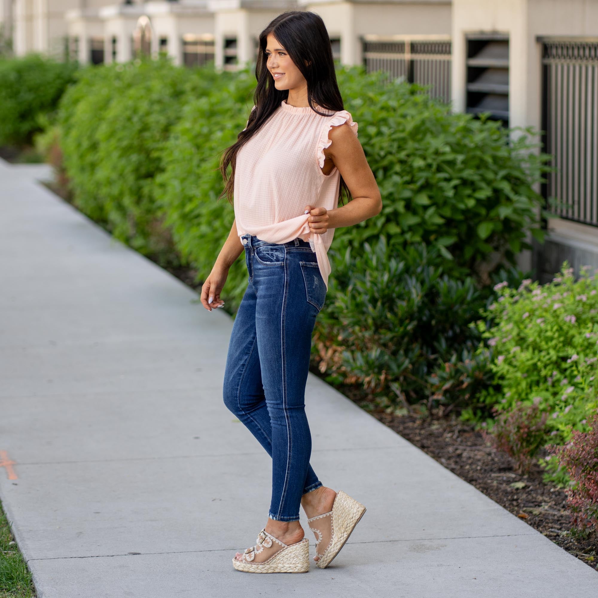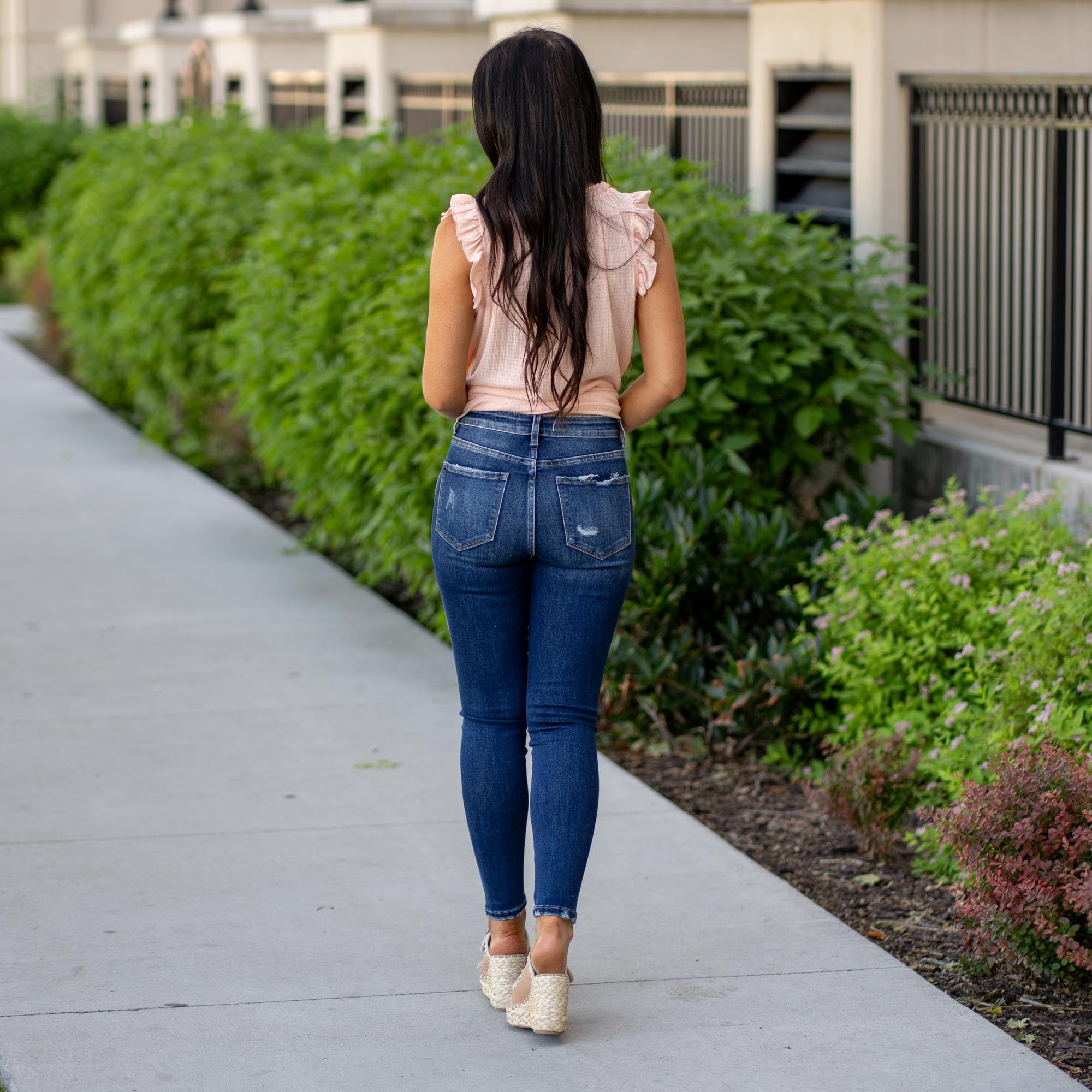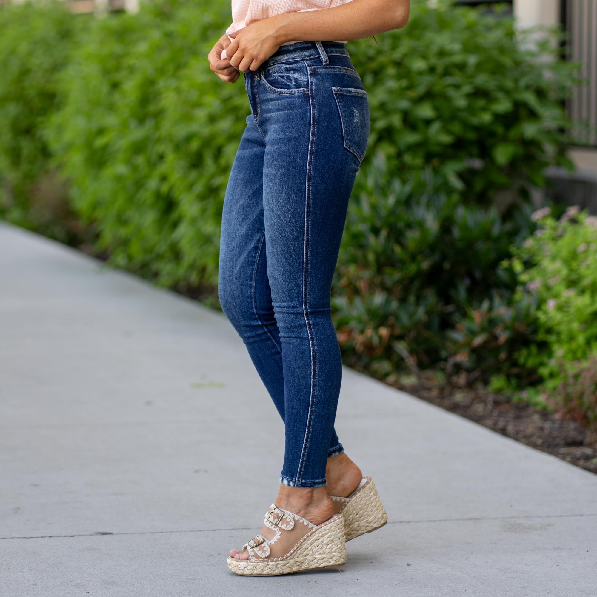 The Catch The Breeze jeans are your go-to for polished comfort with a little edge. Crafted in a rich dark wash with subtle distressing, this high rise crop skinny features a forward outseam that contours and elongates the leg. Made from comfort stretch denim for a sculpted, breathable fit, and finished just above the ankle for an easy, wear-everywhere look. Clean lines, cool vibes—made to move with you.