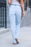 Comfort stretch denim and a slouchy fit make these cute 90s jeans a perfect statement piece.