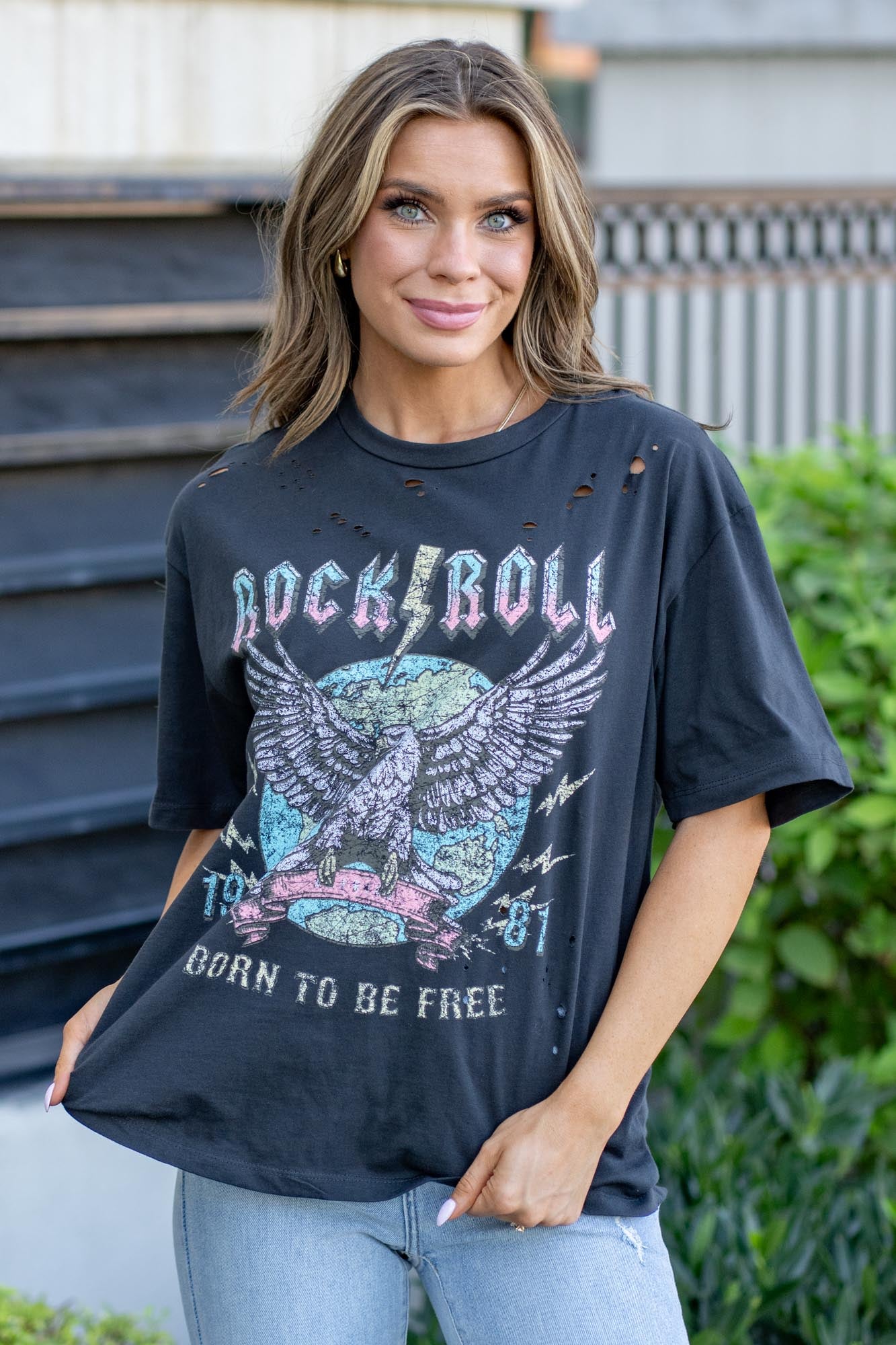 Zutter Rock N Roll Born To Be Free Vintage Graphic T-Shirt Black T-Shirt