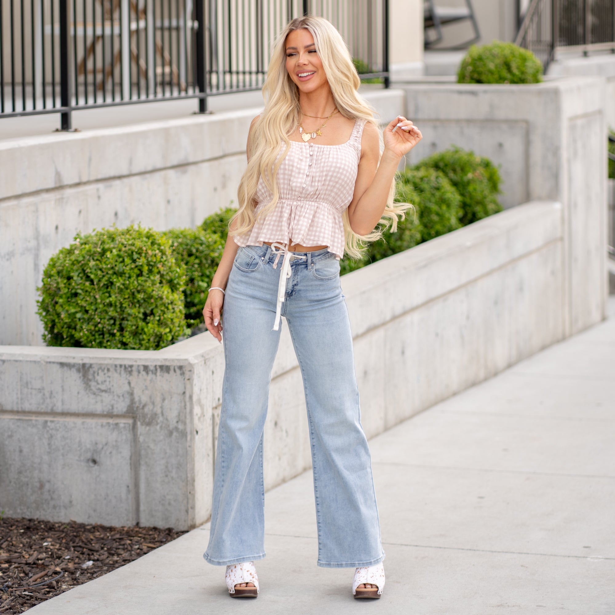 Gingham Peplum Top - Pink
