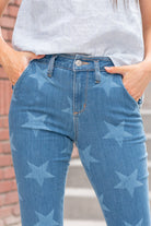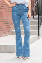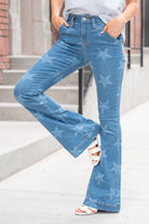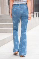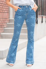 High Rise Star Print Trouser Hem Flare
