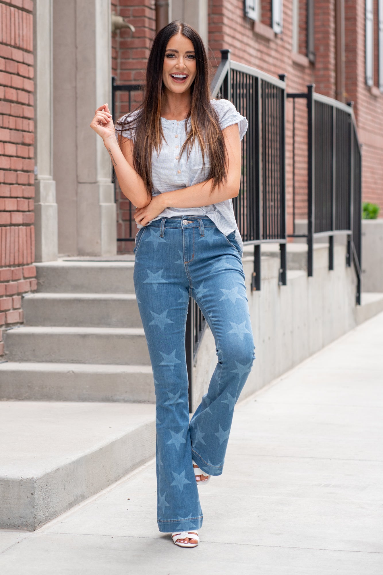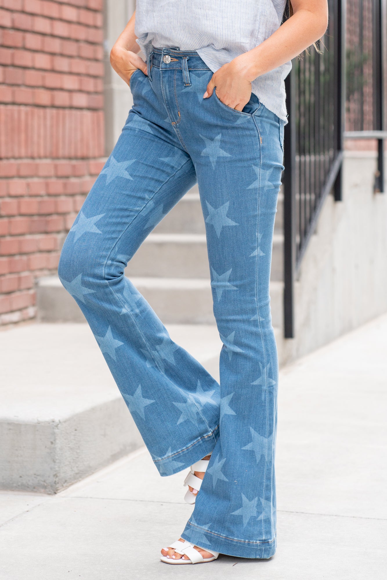 High Rise Star Print Trouser Hem Flare