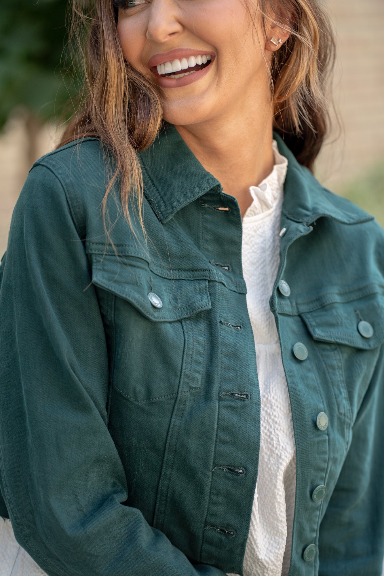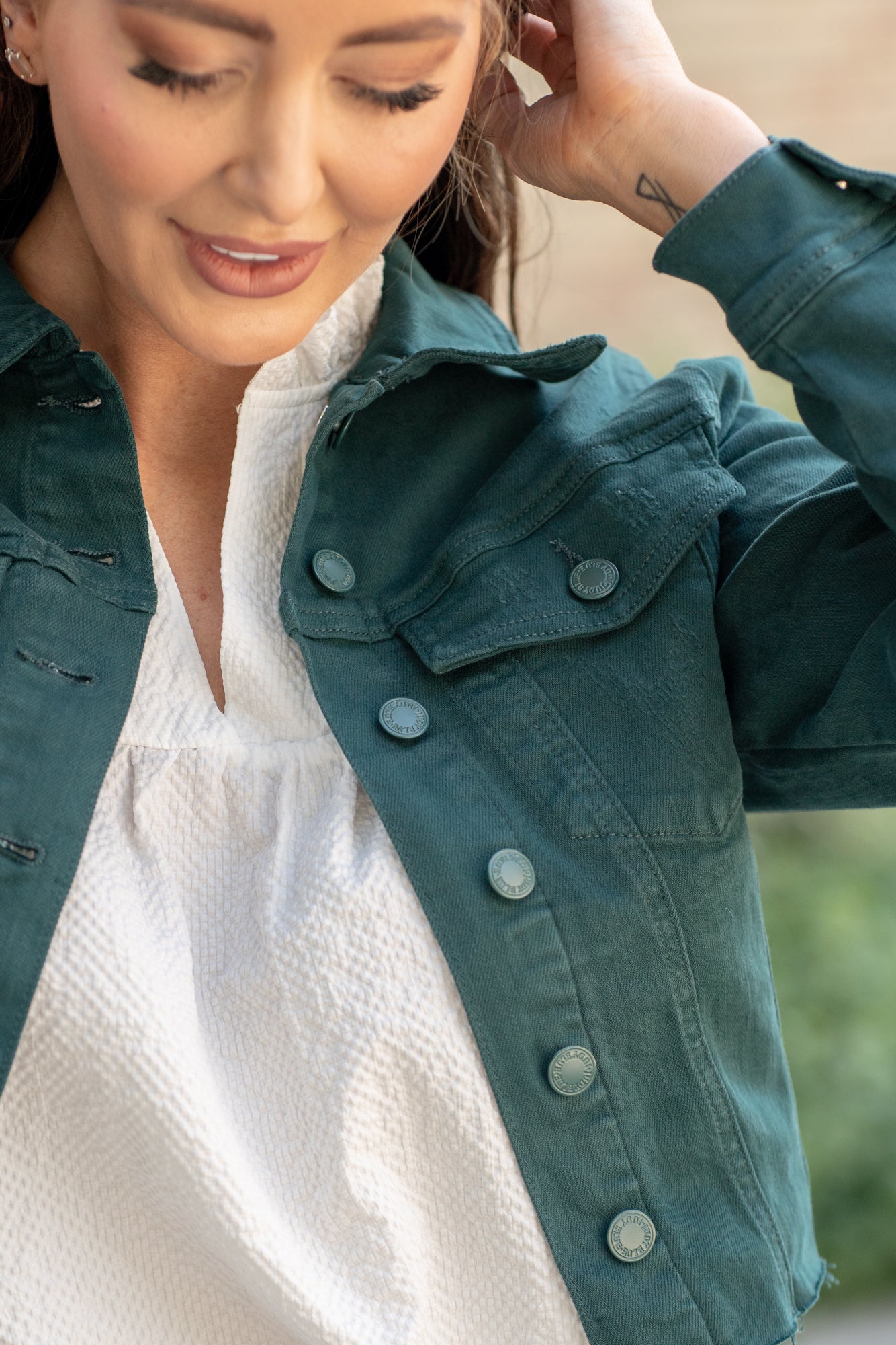 Teal Garment Dyed Grinding Denim Jacket Regular & Plus Sizes