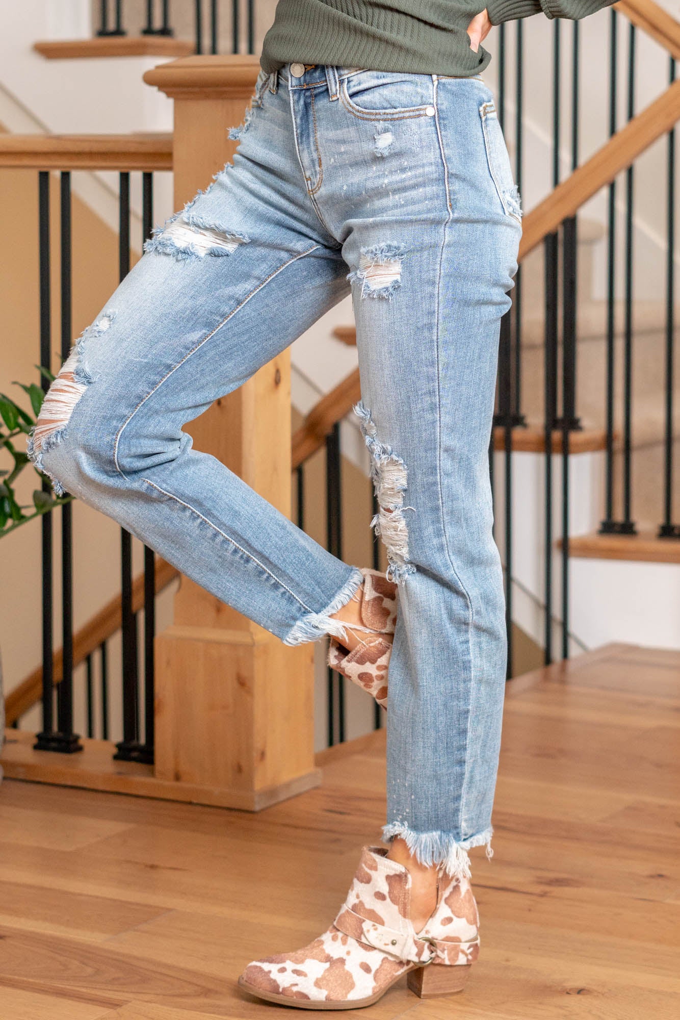 Plus Size Monroe Mid Rise Ripped Boyfriend Mom Jeans