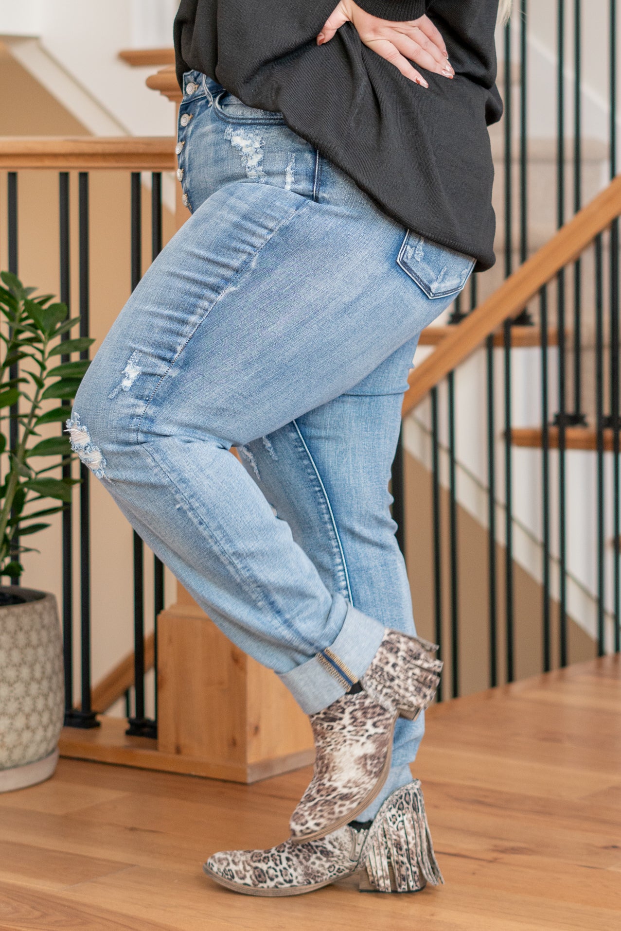 Plus Size Teagan Mid Rise Button Fly Boyfriend (Long Inseam Option)