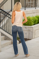 The "Mid Rise Hand Sand Bootcut" jeans offer a classic and timeless denim style. These jeans feature a mid-rise waist and a bootcut leg for a universally flattering fit. The hand-sanded detailing adds a touch of character and a subtly worn-in appearance, making them a versatile and stylish choice for everyday wear.
