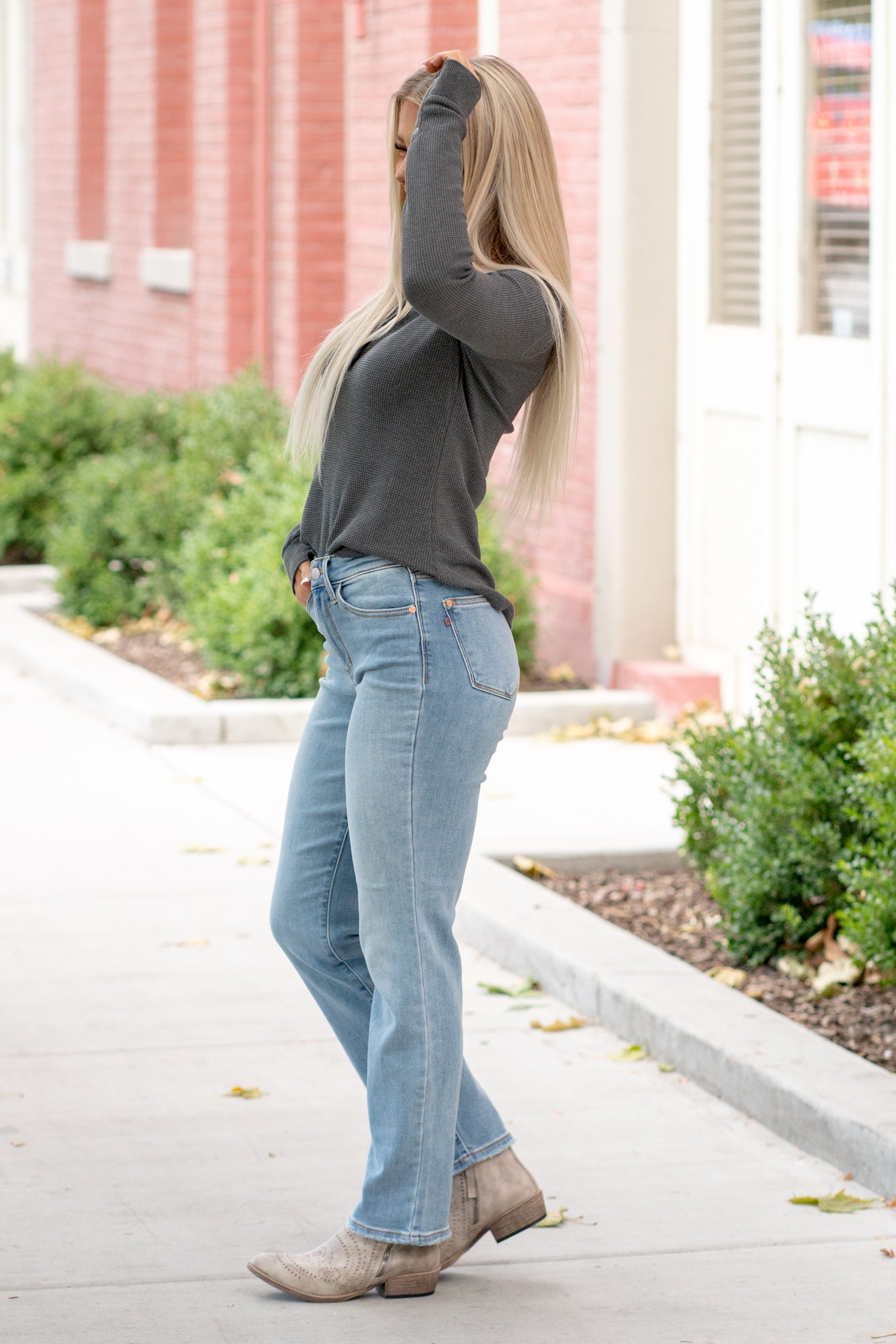 Judy Blue jeans run generous and are very stretchy compared to other brands. We recommend sizing down one size in the skinny jeans, flares, and boot cuts and 2 sizes in the boyfriends or relaxed denim.