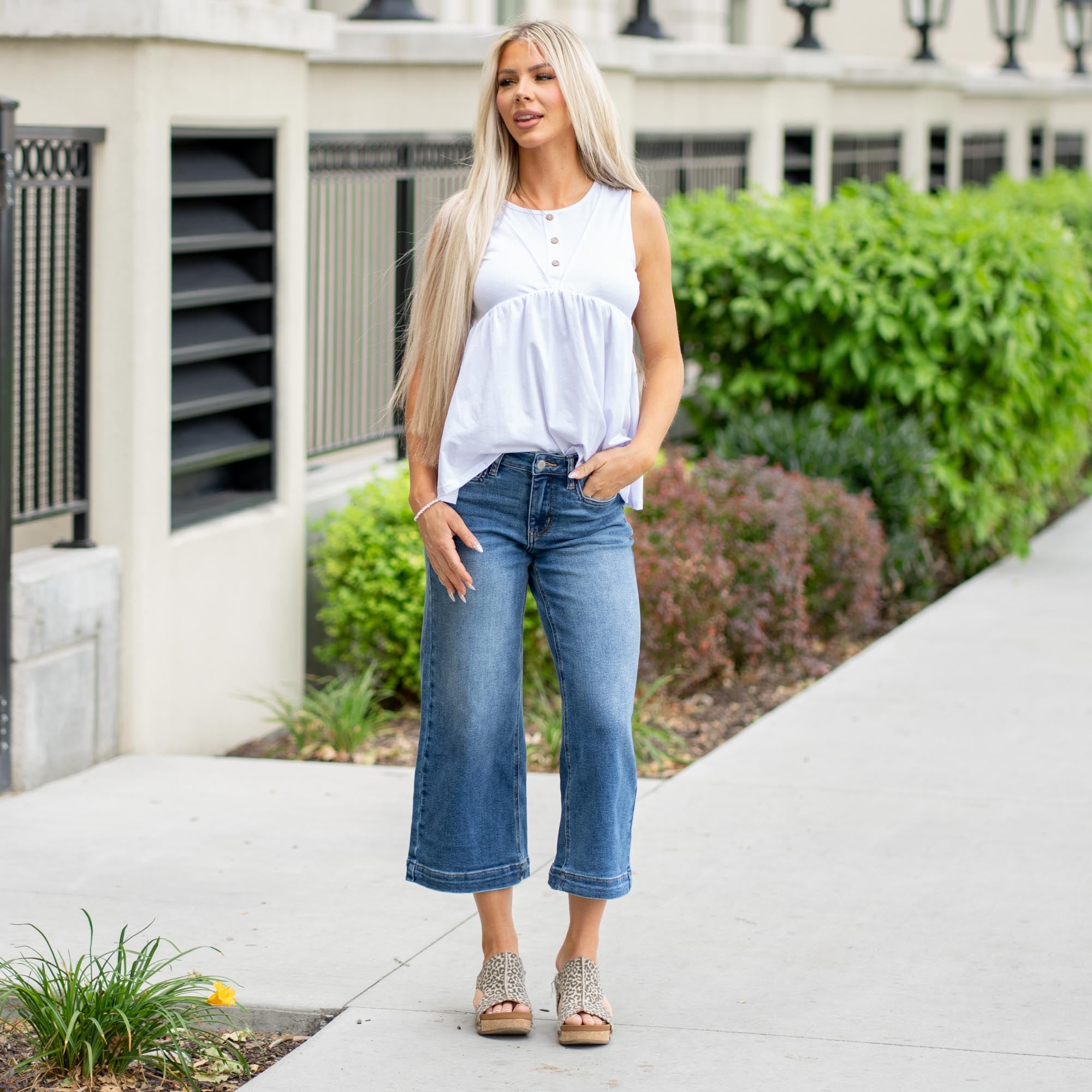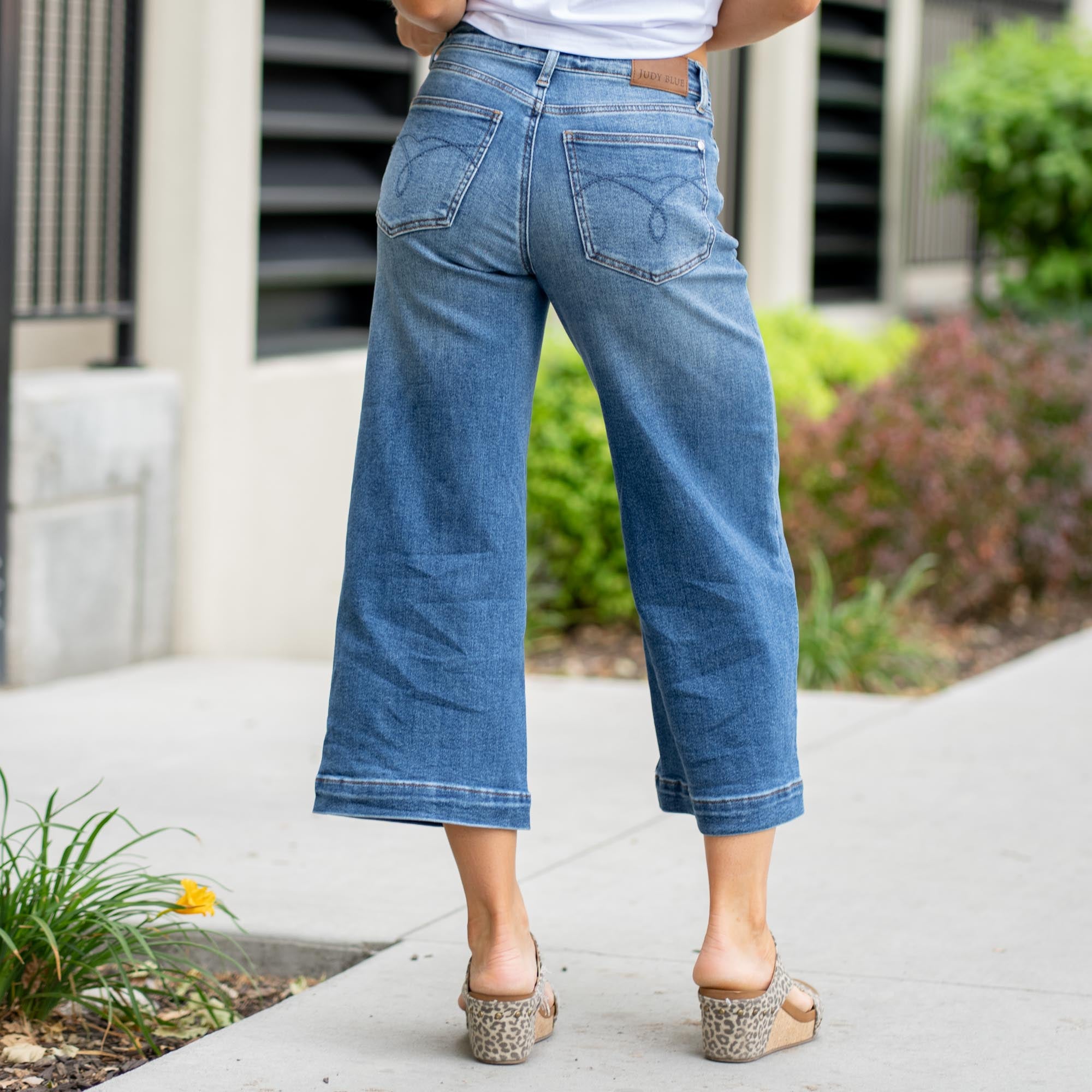 Judy Blue Heritage Mid Rise Cropped Wide Leg Jeans Regular & Plus Sizes