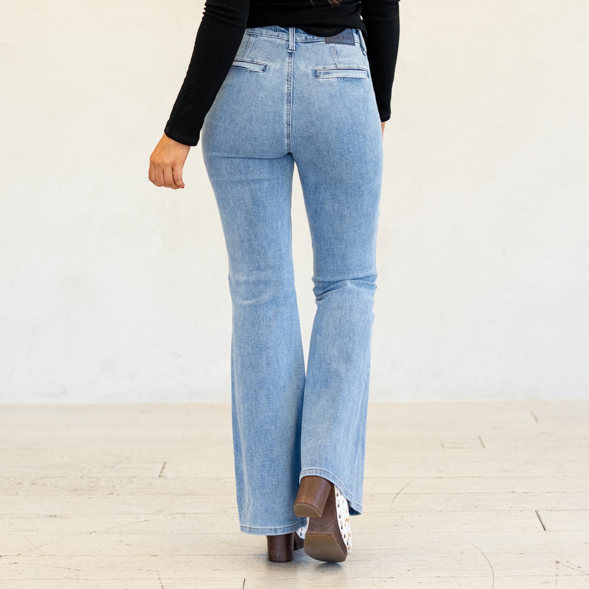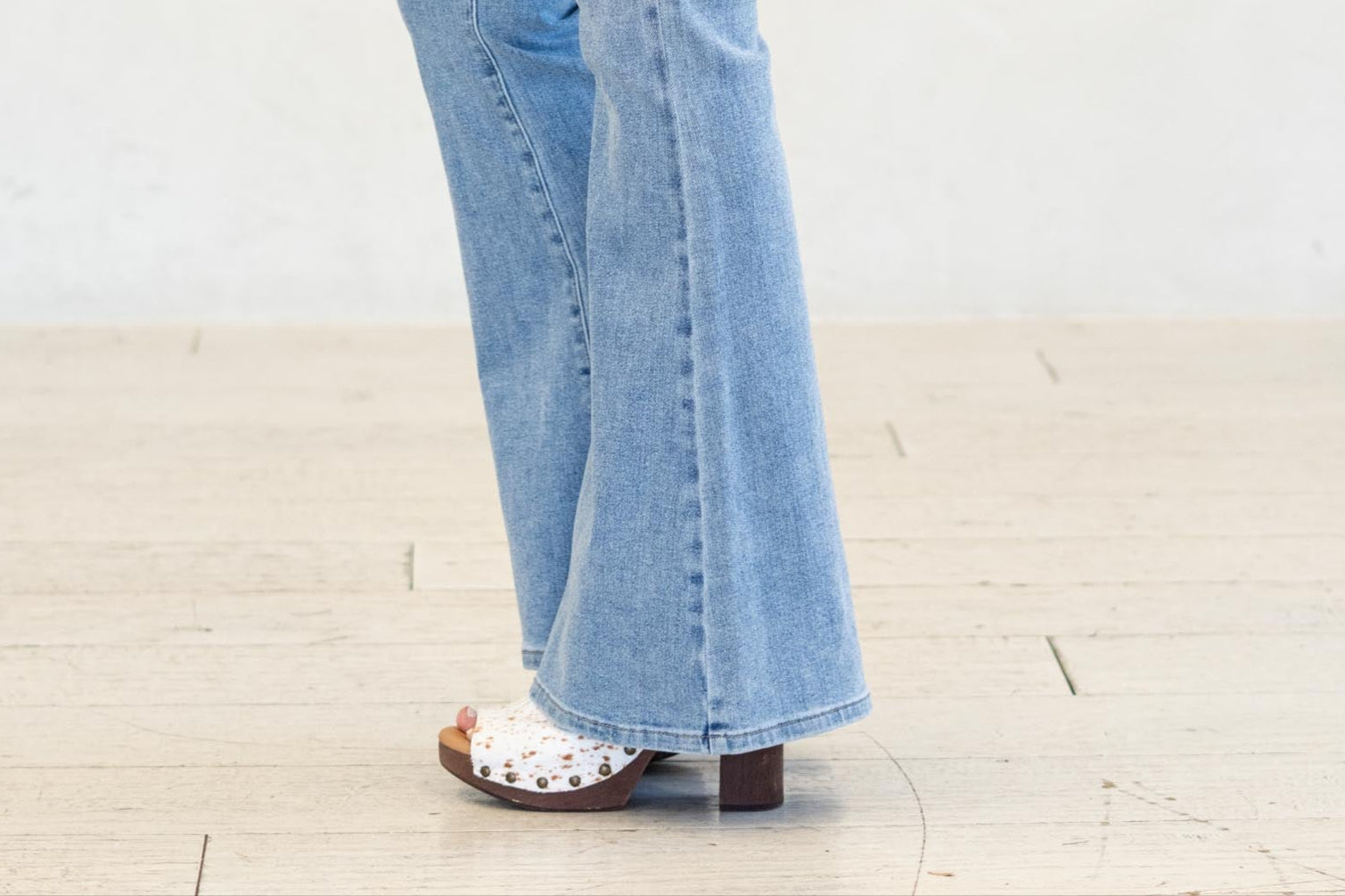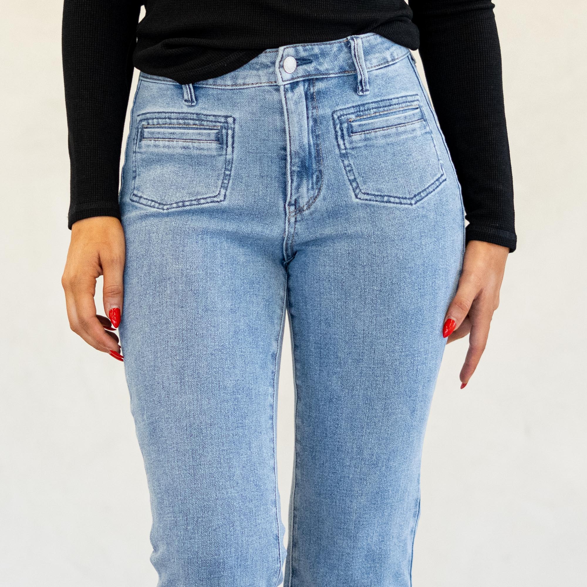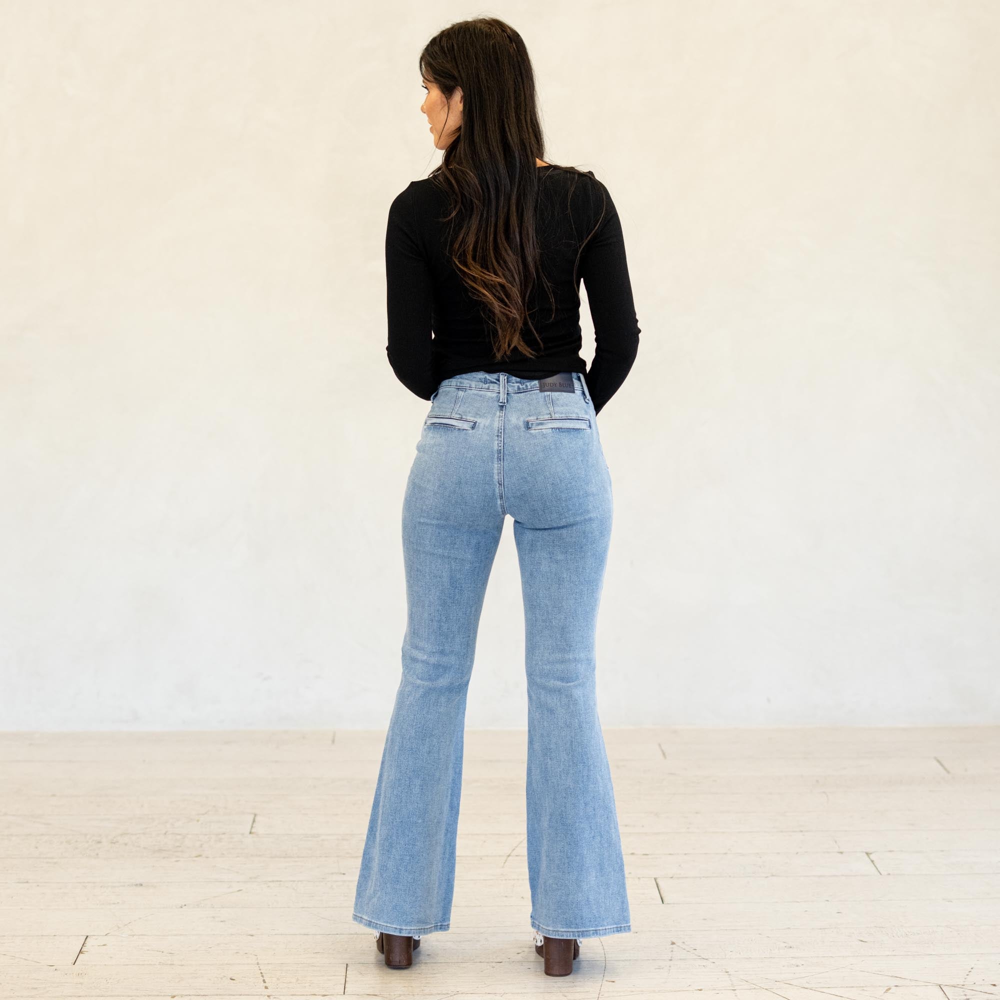 Channel timeless sophistication with the Starlet Flare Pocket Jean. Judy Blue’s high-waisted design flatters your shape while elongating your legs, and the tailored front patch and welt pockets give this flare a polished, elevated finish. The clean dark wash makes them endlessly versatile—perfect for pairing with a tucked-in blouse for workdays or a cozy knit for weekend outings. Designed with Judy Blue’s signature stretch denim, you’ll get that structured look with comfort that lasts all day.
