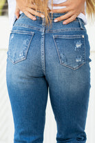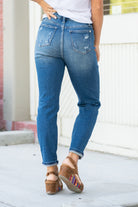 Don't be afraid to wear high-waisted jeans, especially these straight fits. With a medium blue wash and a rainbow embroidered detail,  these will be new favorites!