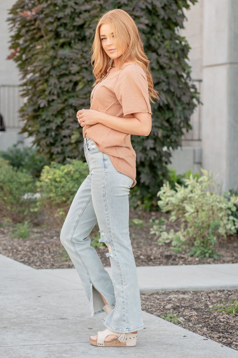 Tired of your skinny jeans? These cute straight fits will be your favorites. With a slit seam hem, it's just enough detail to embellish your outfit.