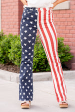 Plus Size American Flag Print High Rise Flare
