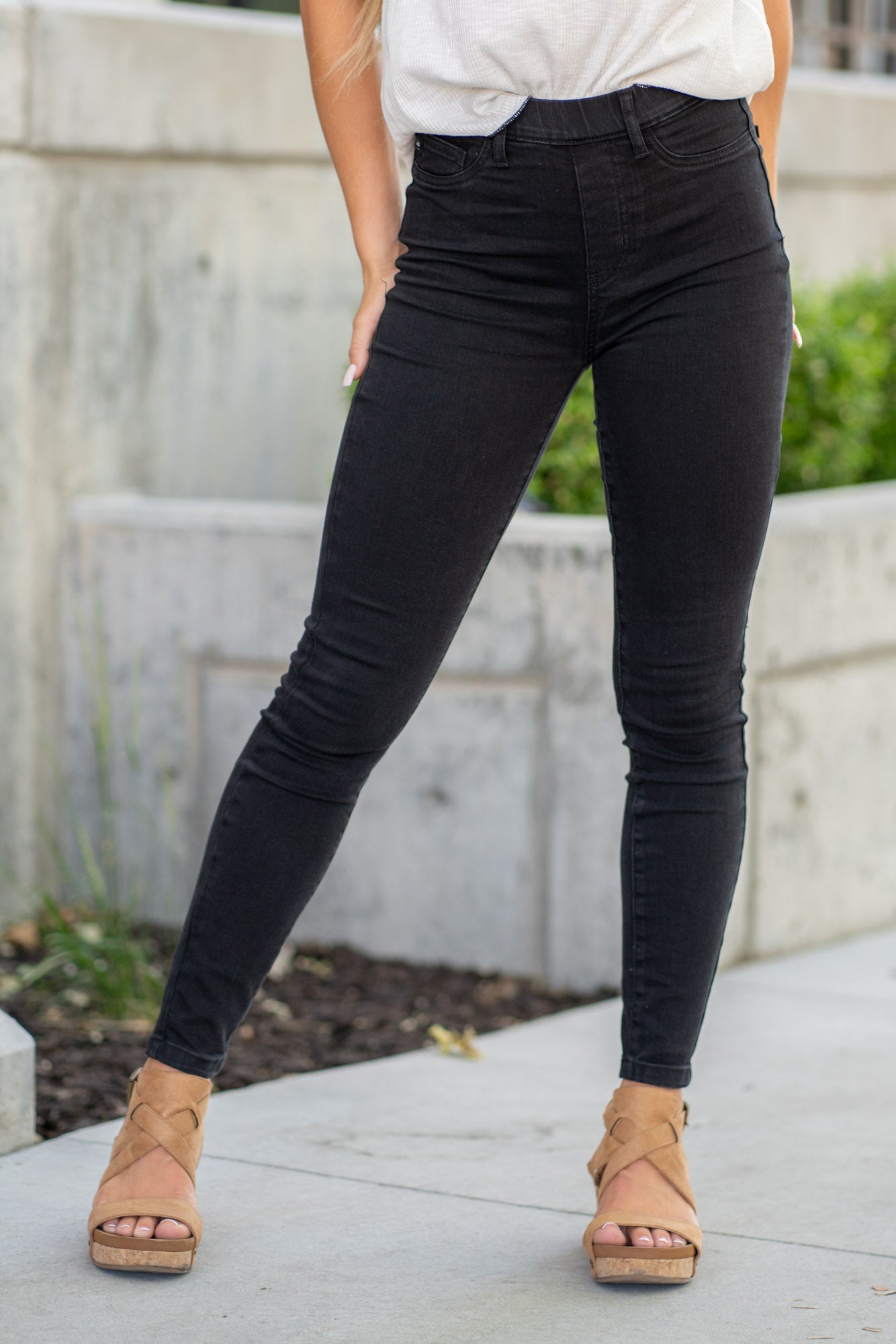 Elevate your style with these comfy high-waisted pull-on jeans. Carefully designed by Judy Blue to pull on and go. Made in black, these will be your everyday go-to denim.