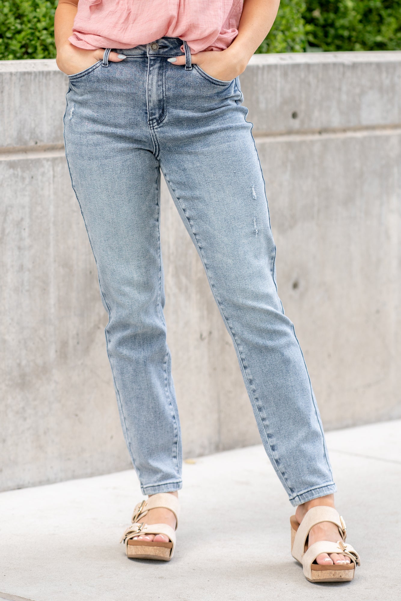 Judy Blue jeans run generous and are very stretchy compared to other brands. We recommend sizing down one size in the skinny jeans, flares, and boot cuts and 2 sizes in the boyfriends or relaxed denim.