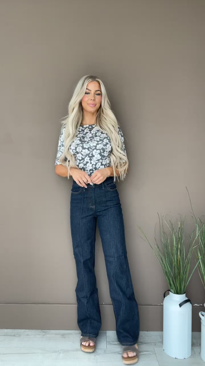 The darling High Rise Front Seam & Dart Wide Leg jeans bring together modern chic and a classic touch. Featuring a high-rise waist, these jeans offer a flattering fit, and the front seam and dart details add a unique and sophisticated element to the wide-leg design. Whether you're dressing up or going for a more relaxed look, these jeans are versatile for various occasions.