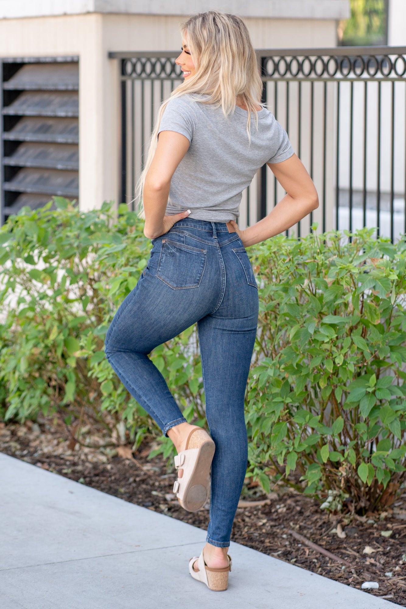 Don't be afraid to wear high-waisted jeans, especially with this control top fit. Carefully designed by Judy Blue to hold your tummy in for a slim look. With a dark blue wash, these will be your everyday go-to denim.