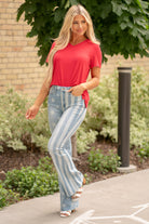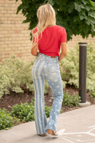 Introducing our High Waist Americana Flag Print Flare Jeans – your ultimate statement piece for celebrating in style! These jeans are a bold declaration of your patriotic spirit, featuring a classic high waist and a vibrant Americana flag print that's perfect for any festive occasion. Crafted from premium denim, they offer both comfort and style, ensuring you feel confident all day long. The flare leg adds a touch of retro flair, making these jeans a standout choice for Fourth of July parties, summer festivals, or any time you want to show off your love for the stars and stripes. Get ready to turn heads and celebrate in style with these Americana-inspired jeans!