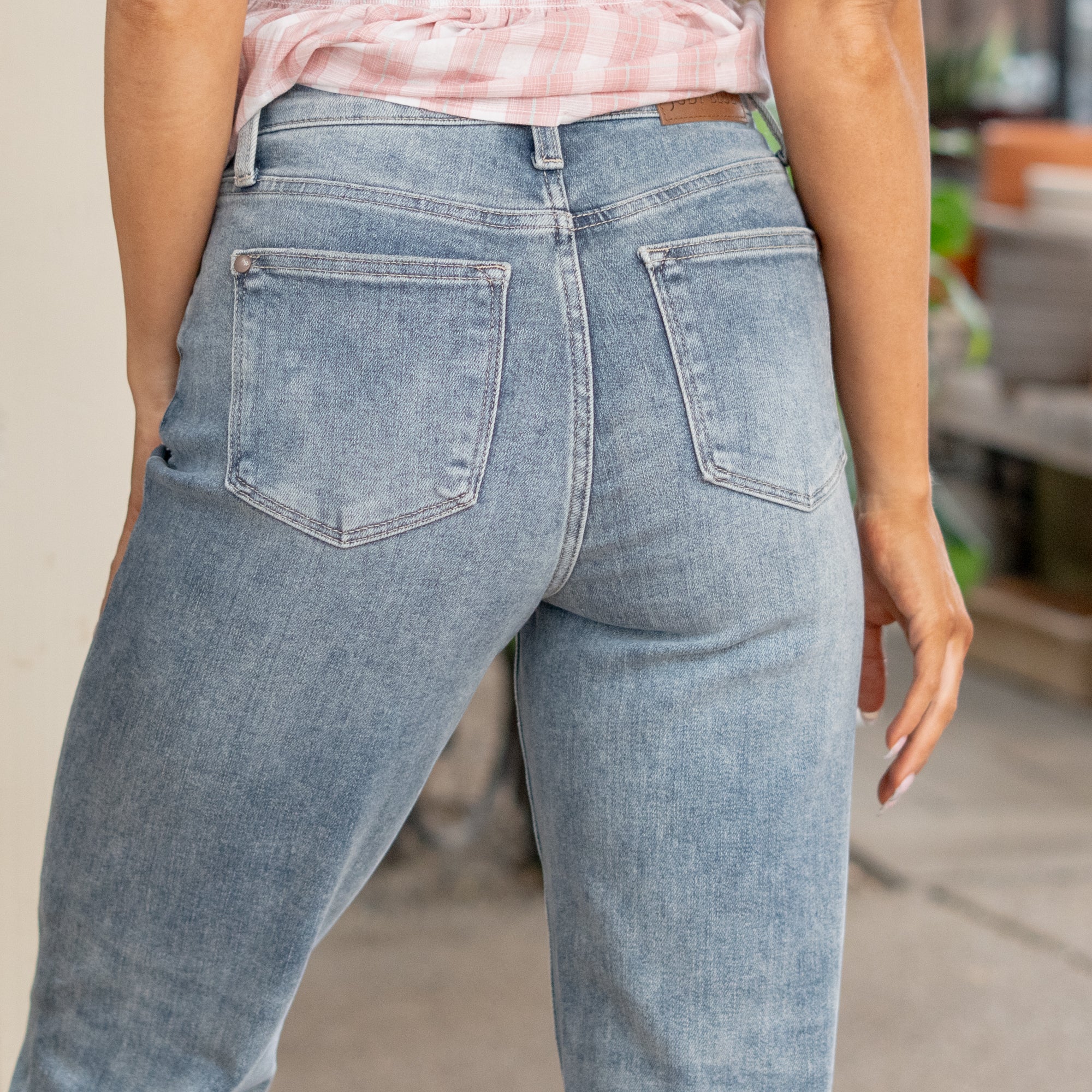 Judy Blue jeans and shorts are made to move with you. Designed with stretch, structure, and curve-hugging comfort, they flatter every shape. Most shoppers size down one full size in stretchy styles, and many plus-size shoppers love the flex and recovery built into every pair.